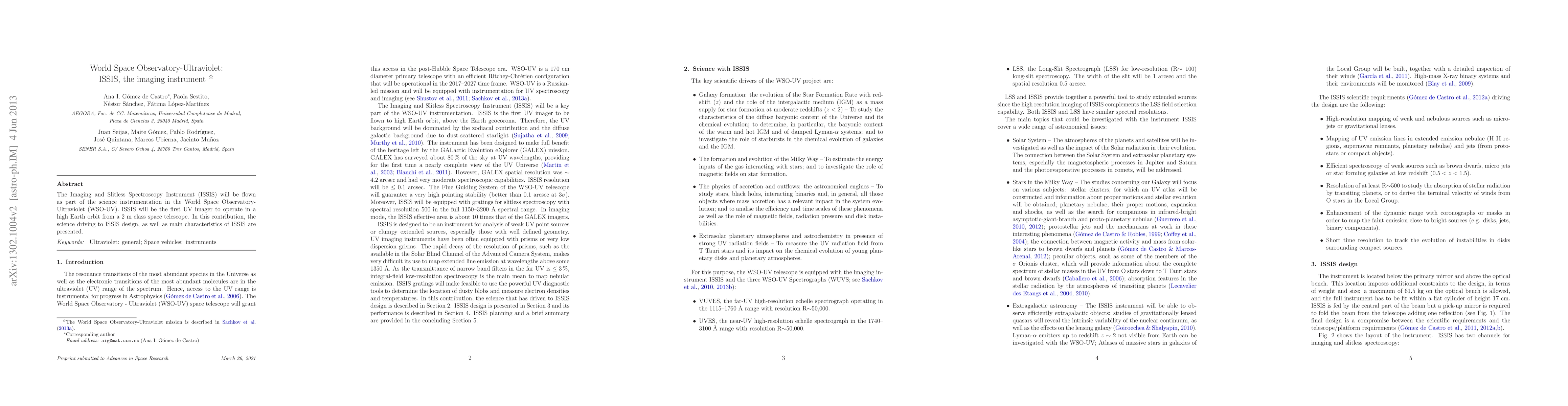 The Imaging and Slitless Spectroscopy Instrument (ISSIS) is designed for the World Space Observatory-Ultraviolet (WSO-UV) mission, aiming to be the first UV imager in high Earth orbit from a 2-m class space telescope, with a focus on its scientific objectives and key design features.