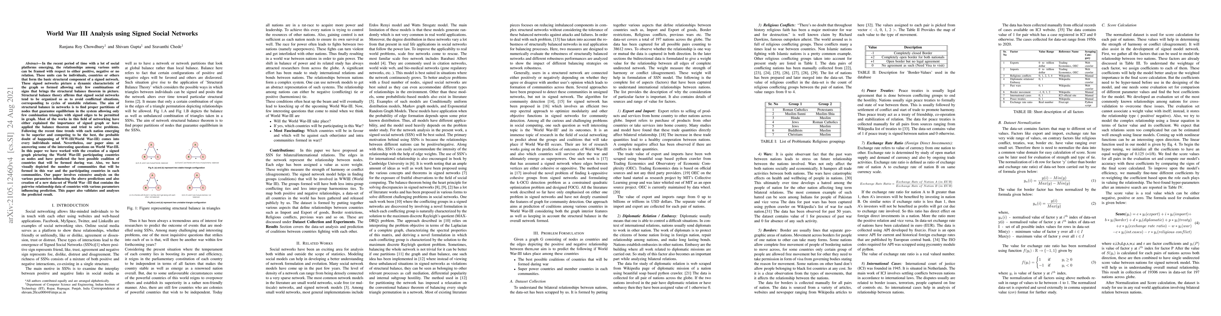 This paper analyzes the potential for World War III using signed social networks to model relationships between countries, applying structural balance theory to predict coalitions and community formations during conflict. It aims to visualize and understand the dynamics of international relations and conflict potential.