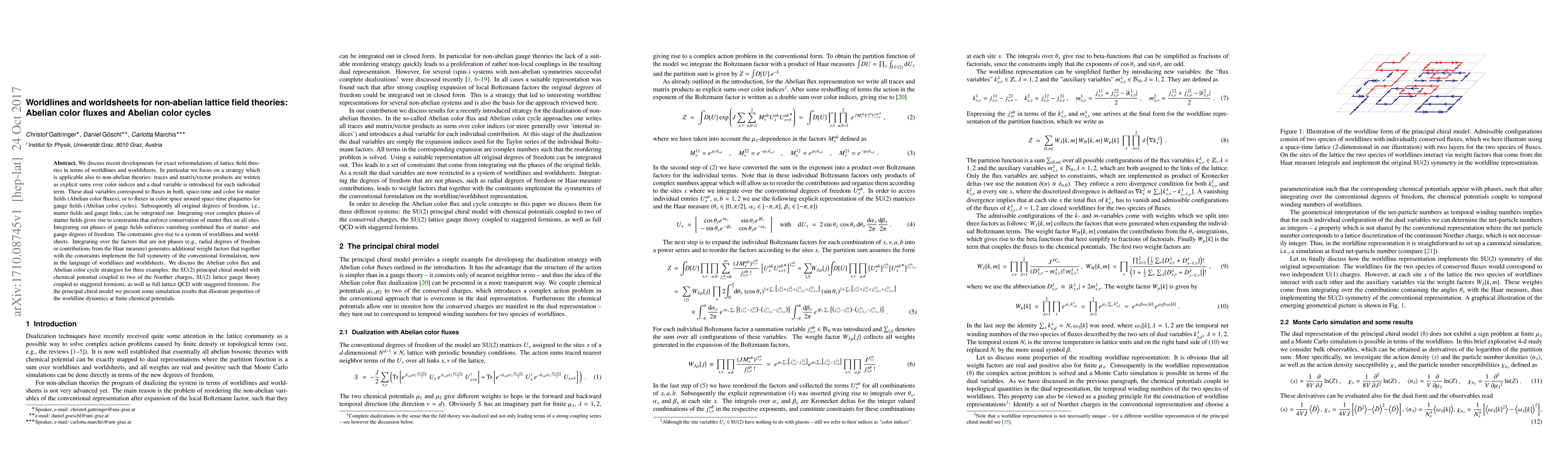 We discuss recent developments for exact reformulations of lattice field theories in terms of worldlines and worldsheets. In particular we focus on a strategy which is applicable also to non-abelian theories: traces and matrix/vector products are written as explicit sums over color indices and a dual variable is introduced for each individual term. These dual variables correspond to fluxes in both, space-time and color for matter fields (Abelian color fluxes), or to fluxes in color space around space-time plaquettes for gauge fields (Abelian color cycles). Subsequently all original degrees of freedom, i.e., matter fields and gauge links, can be integrated out. Integrating over complex phases of matter fields gives rise to constraints that enforce conservation of matter flux on all sites. Integrating out phases of gauge fields enforces vanishing combined flux of matter- and gauge degrees of freedom. The constraints give rise to a system of worldlines and worldsheets. Integrating over the factors that are not phases (e.g., radial degrees of freedom or contributions from the Haar measure) generates additional weight factors that together with the constraints implement the full symmetry of the conventional formulation, now in the language of worldlines and worldsheets. We discuss the Abelian color flux and Abelian color cycle strategies for three examples: the SU(2) principal chiral model with chemical potential coupled to two of the Noether charges, SU(2) lattice gauge theory coupled to staggered fermions, as well as full lattice QCD with staggered fermions. For the principal chiral model we present some simulation results that illustrate properties of the worldline dynamics at finite chemical potentials.