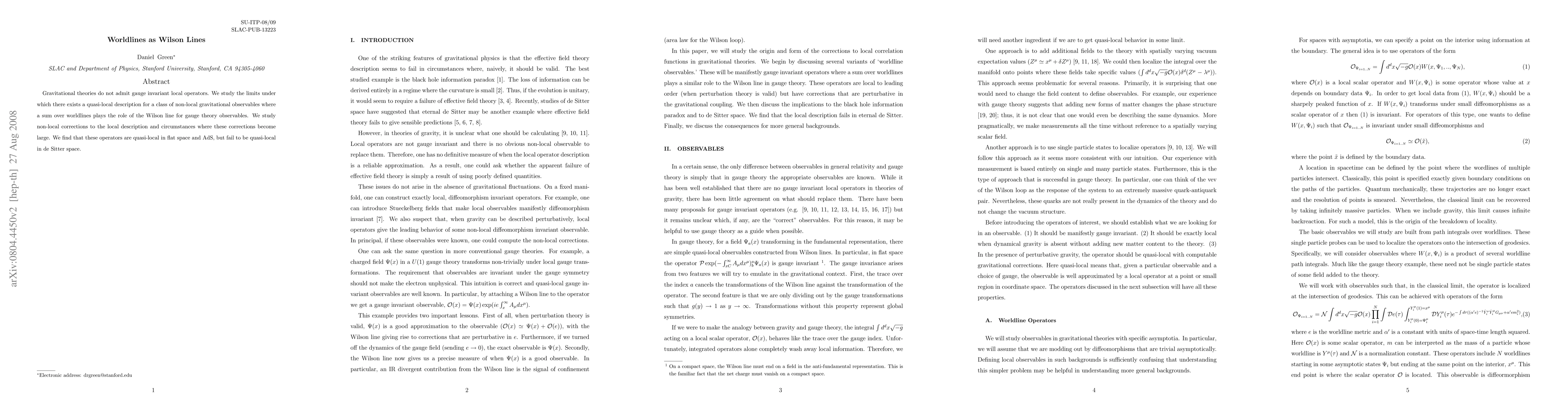 Gravitational theories do not admit gauge invariant local operators. We study the limits under which there exists a quasi-local description for a class of non-local gravitational observables where a sum over worldlines plays the role of the Wilson line for gauge theory observables. We study non-local corrections to the local description and circumstances where these corrections become large. We find that these operators are quasi-local in flat space and AdS, but fail to be quasi-local in de Sitter space.