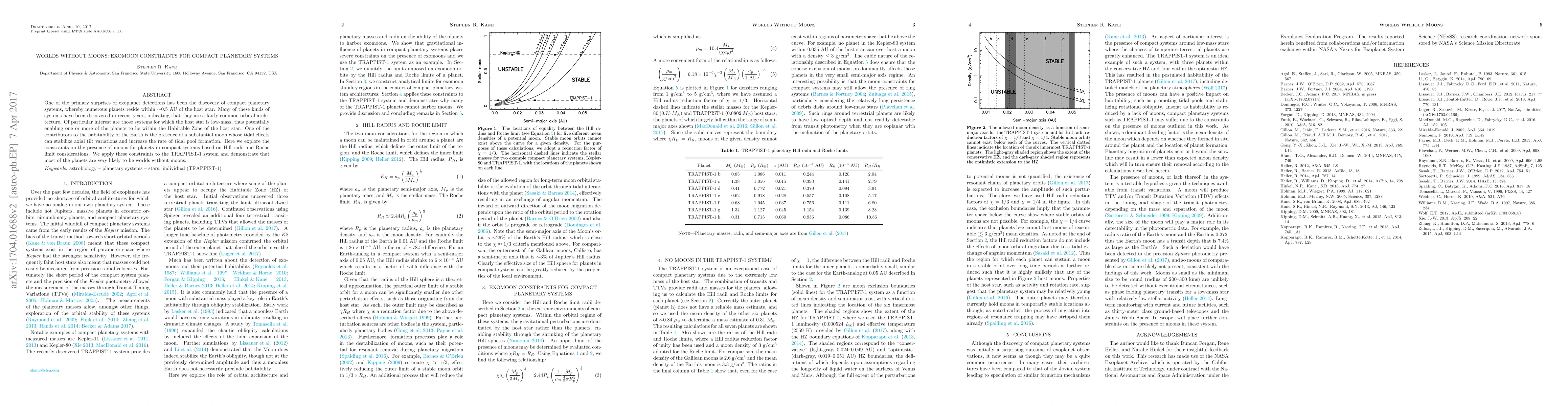 One of the primary surprises of exoplanet detections has been the discovery of compact planetary systems, whereby numerous planets reside within ~0.5 AU of the host star. Many of these kinds of systems have been discovered in recent years, indicating that they are fairly common orbital architecture. Of particular interest are those systems for which the host star is low-mass, thus potentially enabling one or more of the planets to lie within the Habitable Zone of the host star. One of the contributors to the habitability of the Earth is the presence of a substantial moon whose tidal effects can stabilize axial tilt variations and increase the rate of tidal pool formation. Here we explore the constraints on the presence of moons for planets in compact systems based on Hill radii and Roche limit considerations. We apply these constraints to the TRAPPIST-1 system and demonstrate that most of the planets are very likely to be worlds without moons.