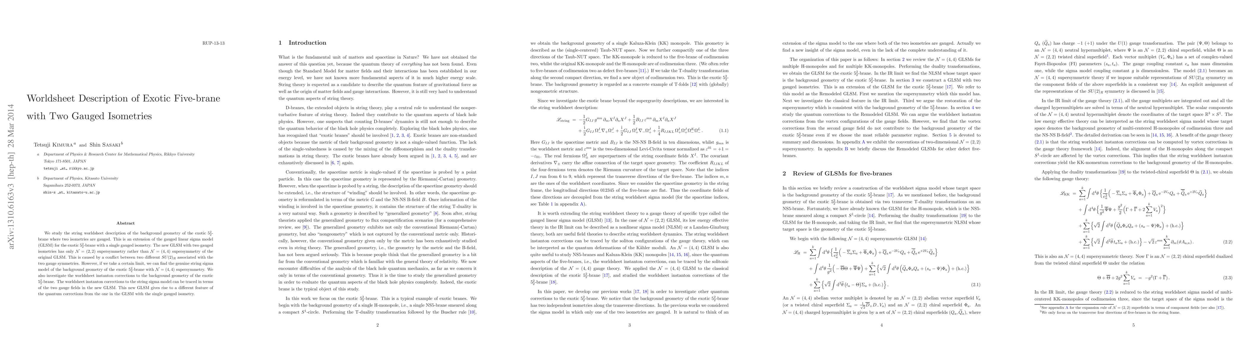This paper explores the string worldsheet description of the exotic $5^2_2$-brane with two gauged isometries, extending the gauged linear sigma model (GLSM) framework. It finds that the new GLSM with two gauged isometries has reduced ${\mathcal N}=(2,2)$ supersymmetry due to conflicts between $SU(2)_R$ symmetries, but a specific limit restores ${\mathcal N}=(4,4)$ supersymmetry. The study also investigates worldsheet instanton corrections, revealing distinct quantum features compared to the single gauged isometry case.