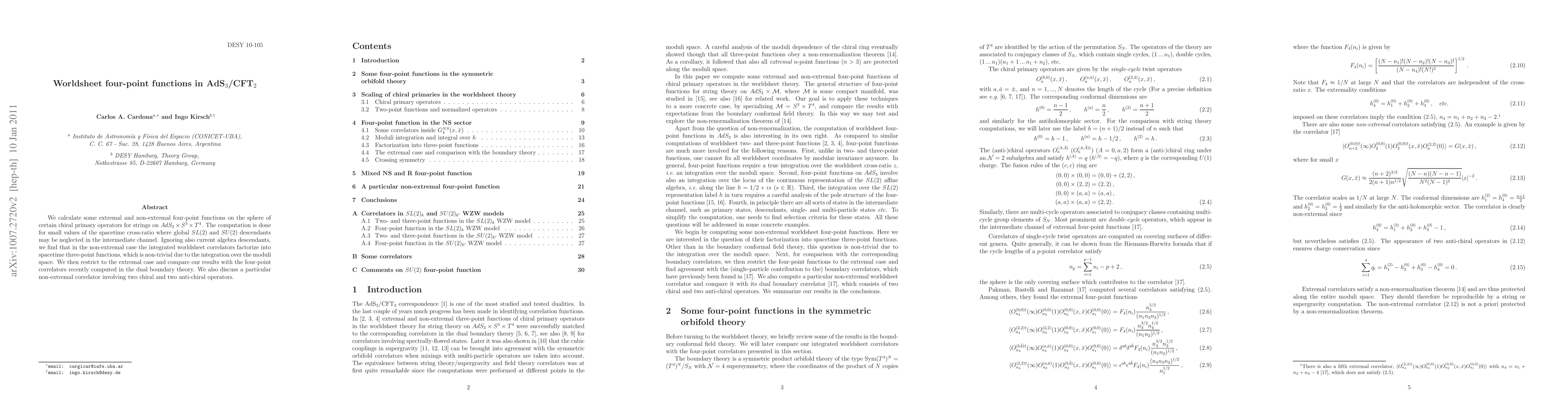 This paper calculates four-point functions of chiral primary operators for strings in AdS_3 x S^3 x T^4, finding factorization into spacetime three-point functions for non-extremal cases. For extremal cases, results are compared with dual boundary theory correlators, highlighting the factorization's nontrivial nature due to moduli space integration.
