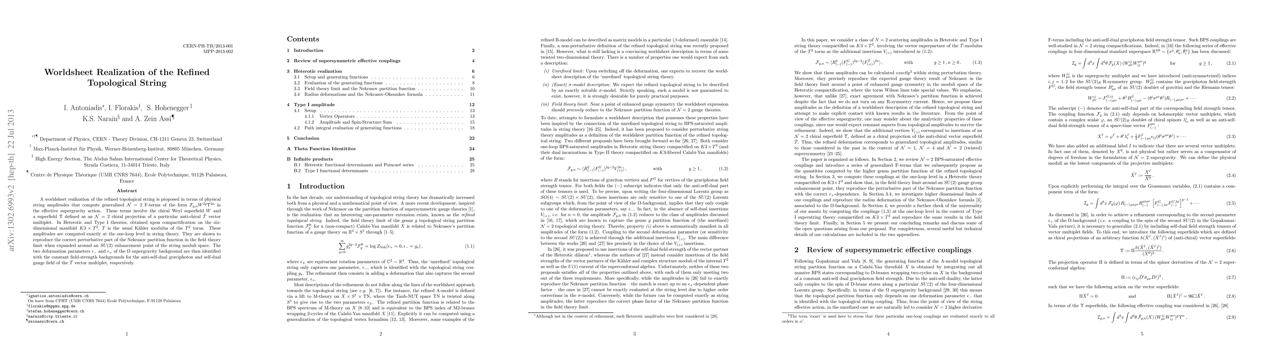 A worldsheet realization of the refined topological string is proposed in terms of physical string amplitudes that compute generalized N=2 F-terms of the form F_{g,n} W^{2g}Y^{2n} in the effective supergravity action. These terms involve the chiral Weyl superfield W and a superfield Y defined as an N=2 chiral projection of a particular anti-chiral T-bar vector multiplet. In Heterotic and Type I theories, obtained upon compactification on the six-dimensional manifold K3xT2, T is the usual K\"ahler modulus of the T2 torus. These amplitudes are computed exactly at the one-loop level in string theory. They are shown to reproduce the correct perturbative part of the Nekrasov partition function in the field theory limit when expanded around an SU(2) enhancement point of the string moduli space. The two deformation parameters epsilon_- and epsilon_+ of the Omega-supergravity background are then identified with the constant field-strength backgrounds for the anti-self-dual graviphoton and self-dual gauge field of the T-bar vector multiplet, respectively.