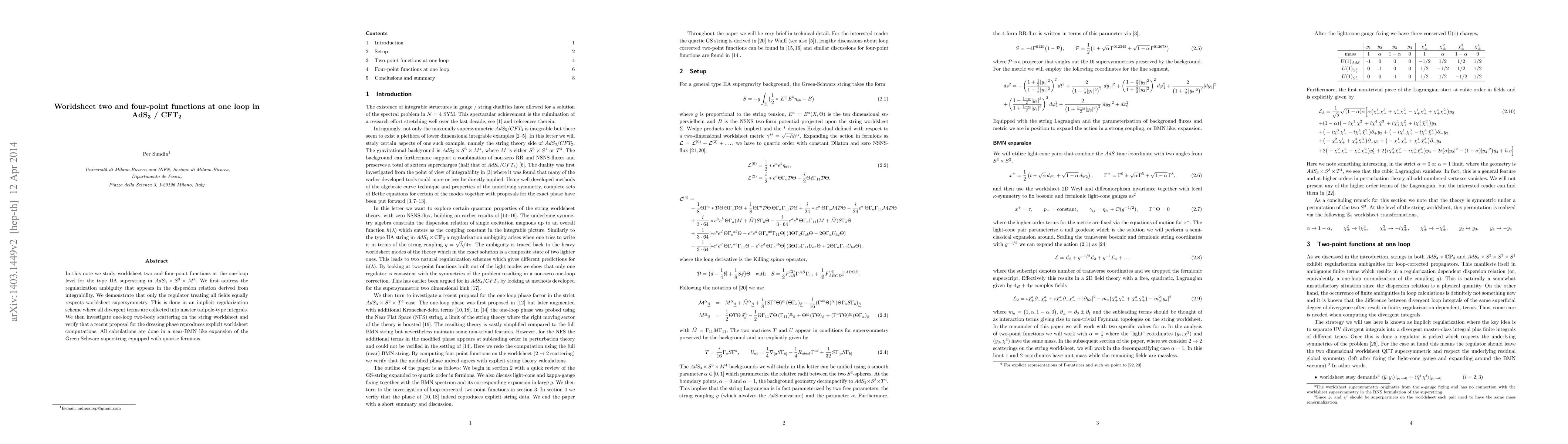 In this note we study worldsheet two- and four-point functions at the one-loop level for the type IIA superstring in AdS(3) x S(3) x M(4) . We first address the regularization ambiguity that appears in the dispersion relation derived from integrability. We demonstrate that only the regulator treating all fields equally respects worldsheet supersymmetry. This is done in an implicit regularization scheme where all divergent terms are collected into master tadpole-type integrals. We then investigate one-loop two-body scattering on the string worldsheet and verify that a recent proposal for the dressing phase reproduces explicit worldsheet computations. All calculations are done in a near-BMN like expansion of the Green-Schwarz superstring equipped with quartic fermions.