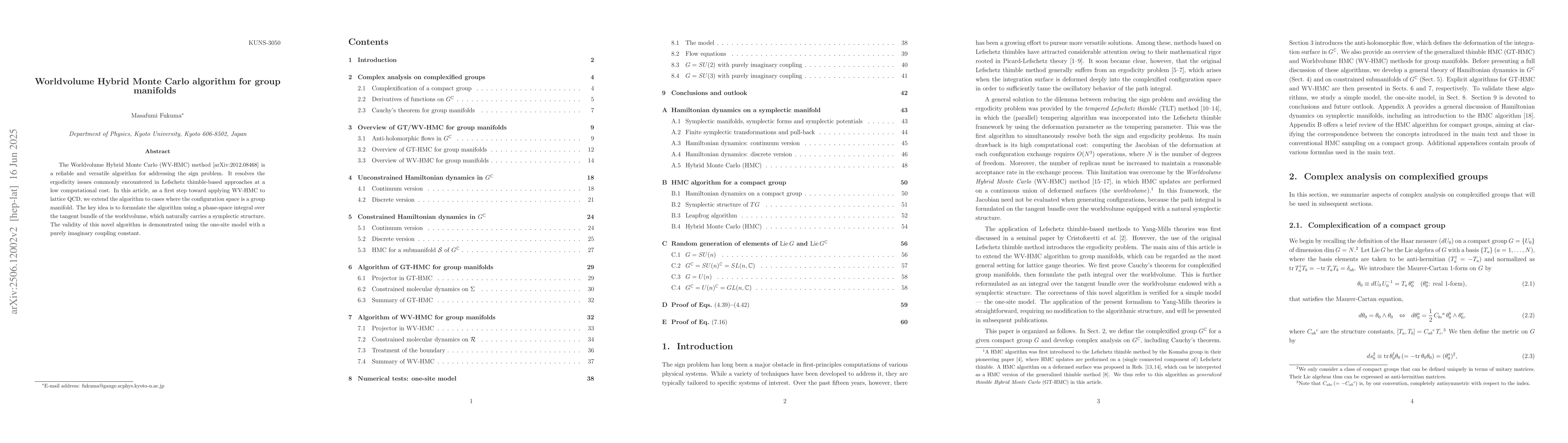 The Worldvolume Hybrid Monte Carlo (WV-HMC) method [arXiv:2012.08468] is a reliable and versatile algorithm for addressing the sign problem. It resolves the ergodicity issues commonly encountered in Lefschetz thimble-based approaches at a low computational cost. In this article, as a first step toward applying WV-HMC to lattice QCD, we extend the algorithm to cases where the configuration space is a group manifold. The key idea is to formulate the algorithm using a phase-space integral over the tangent bundle of the worldvolume, which naturally carries a symplectic structure. The validity of this novel algorithm is demonstrated using the one-site model with a purely imaginary coupling constant.