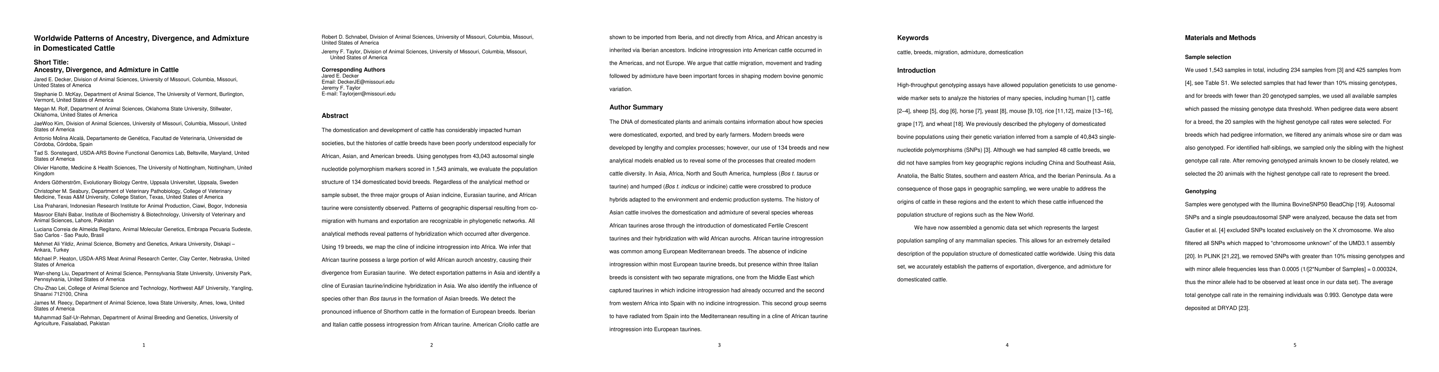 This paper evaluates the population structure of 134 domesticated cattle breeds using extensive genetic data, revealing three major groups: Asian indicine, Eurasian taurine, and African taurine. It highlights patterns of hybridization, migration, and admixture that have shaped modern bovine genomic variation, including significant indicine introgression into African and American cattle.