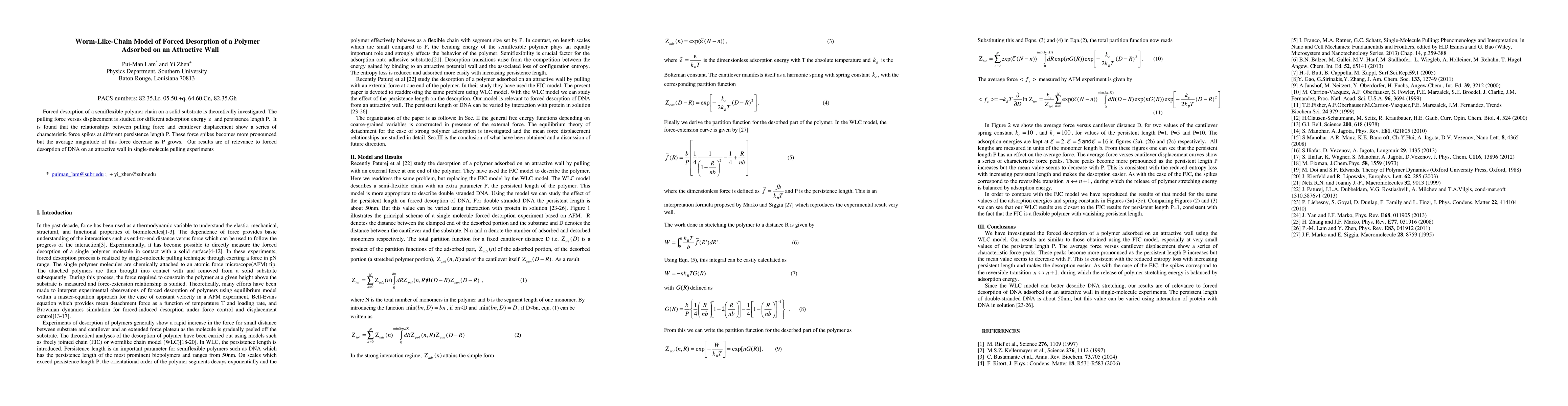This paper investigates the forced desorption of a semiflexible polymer from an attractive wall, revealing characteristic force spikes in the pulling force versus displacement relationship. The study finds that while these spikes become more pronounced, the average force decreases with increasing polymer persistence length, relevant to DNA desorption in single-molecule experiments.