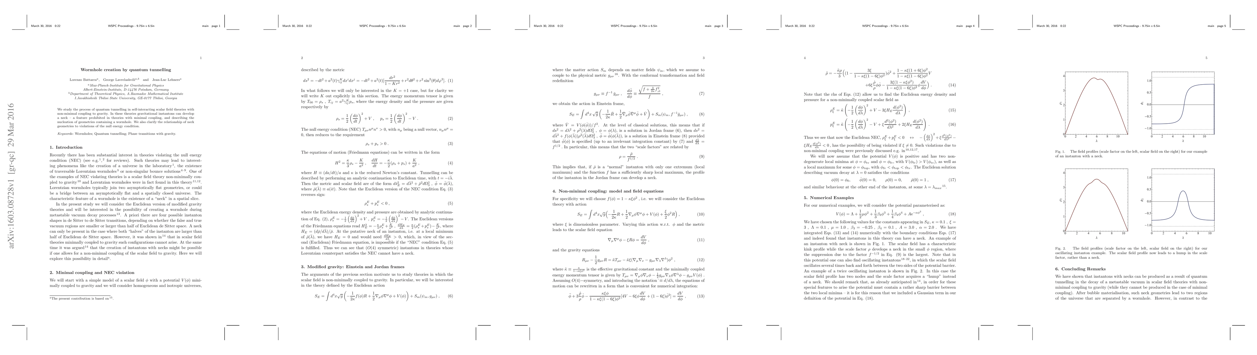 We study the process of quantum tunnelling in self-interacting scalar field theories with non-minimal coupling to gravity. In these theories gravitational instantons can develop a neck -- a feature prohibited in theories with minimal coupling, and describing the nucleation of geometries containing a wormhole. We also clarify the relationship of neck geometries to violations of the null energy condition.