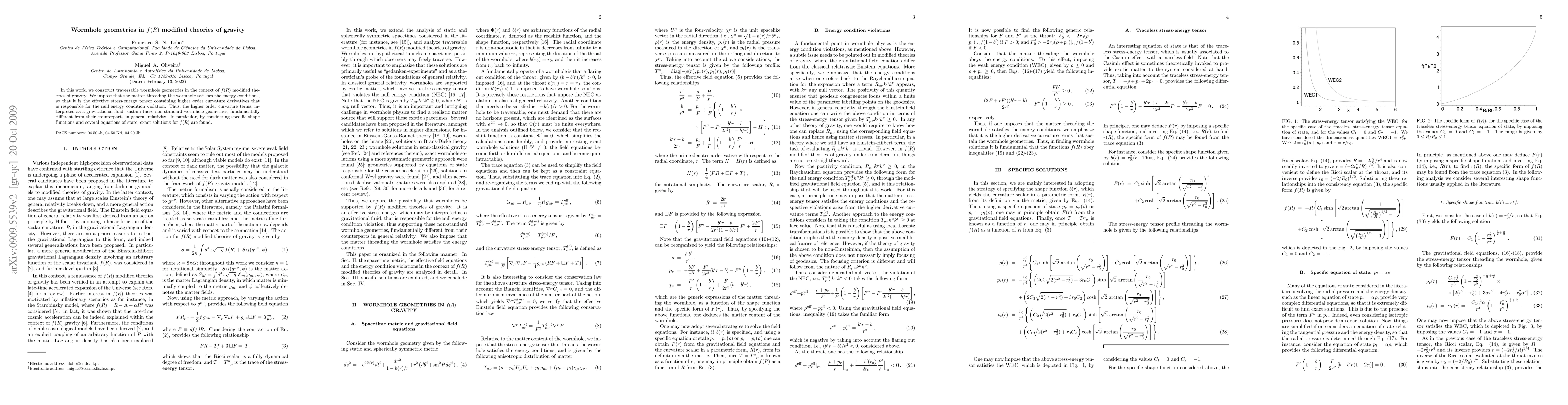This paper constructs traversable wormhole geometries using f(R) modified gravity theories, where higher-order curvature terms act as a gravitational fluid to sustain the wormholes, differing from general relativity. Exact solutions are derived for specific shape functions and equations of state.