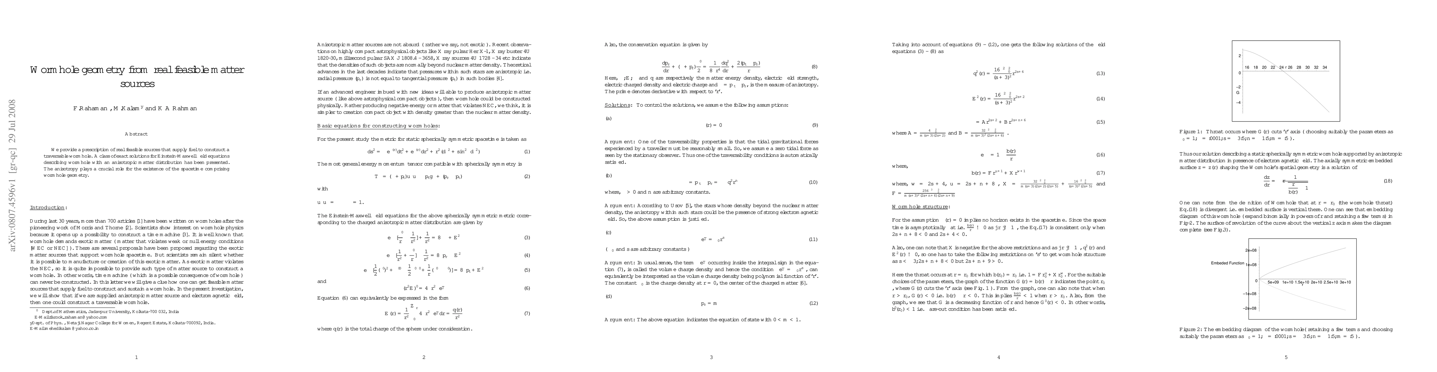 We provide a prescription of real feasible sources that supply fuel to construct a traversable wormhole. A class of exact solutions for Einstein-Maxwell field equations describing wormhole with an anisotropic matter distribution has been presented. The anisotropy plays a crucial role for the existence of the spacetime comprising wormhole geometry.