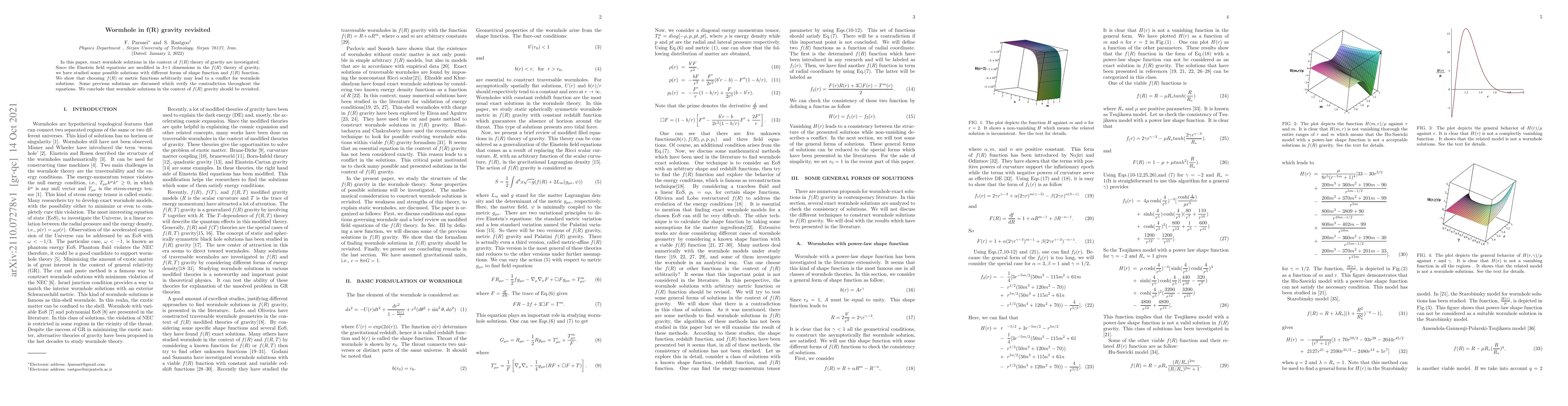 This paper investigates exact wormhole solutions in $f(R)$ gravity, finding that modifications in the Einstein field equations lead to conflicts with previously proposed solutions. The study suggests that wormhole solutions in $f(R)$ gravity require further examination.