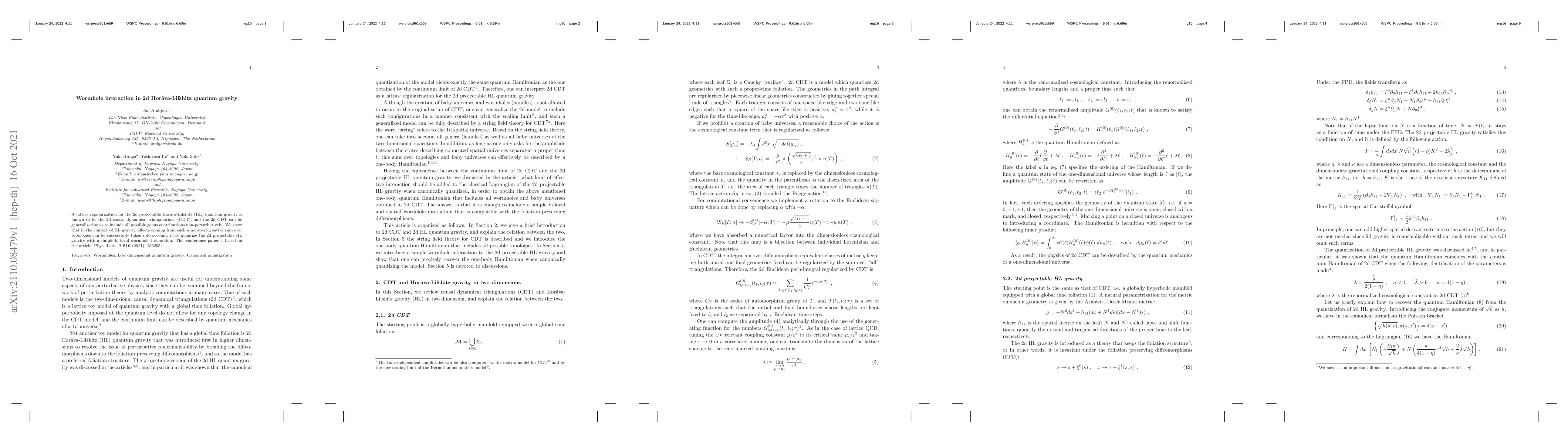 A lattice regularization for the $2$d projectable Horava-Lifshitz (HL) quantum gravity is known to be the $2$d causal dynamical triangulations (CDT), and the $2$d CDT can be generalized so as to include all possible genus contributions non-perturbatively. We show that in the context of HL gravity, effects coming from such a non-perturbative sum over topologies can be successfully taken into account, if we quantize the $2$d projectable HL gravity with a simple bi-local wormhole interaction. This conference paper is based on the article, Phys. Lett. B 816 (2021), 136205.