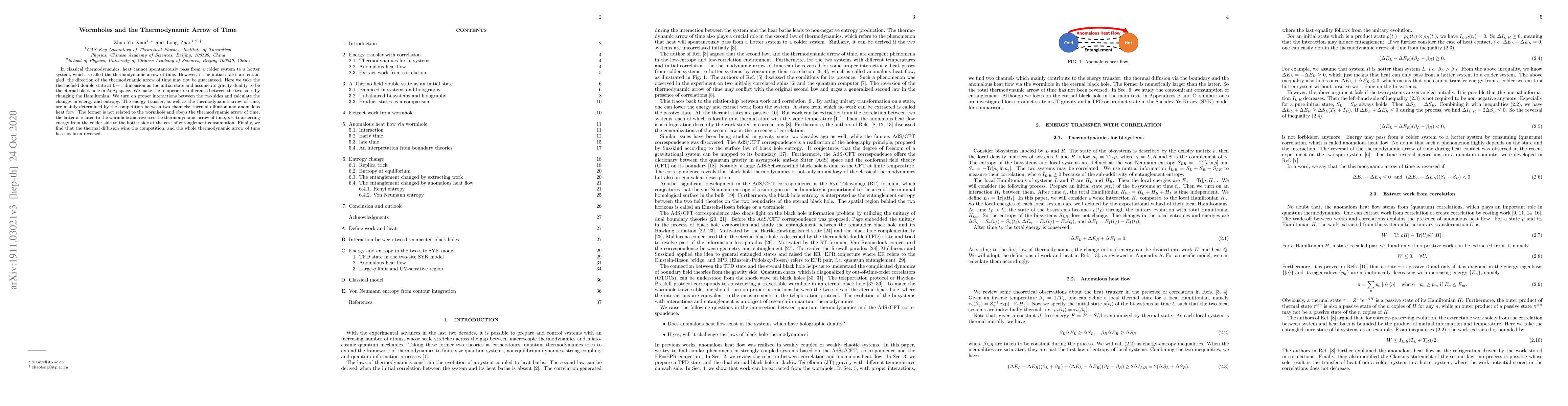 This paper explores how wormholes might affect the thermodynamic arrow of time in entangled systems, revealing that thermal diffusion usually maintains the thermodynamic direction while anomalous heat flow related to wormholes can temporarily reverse it. Ultimately, thermal diffusion prevails, preserving the thermodynamic arrow of time.