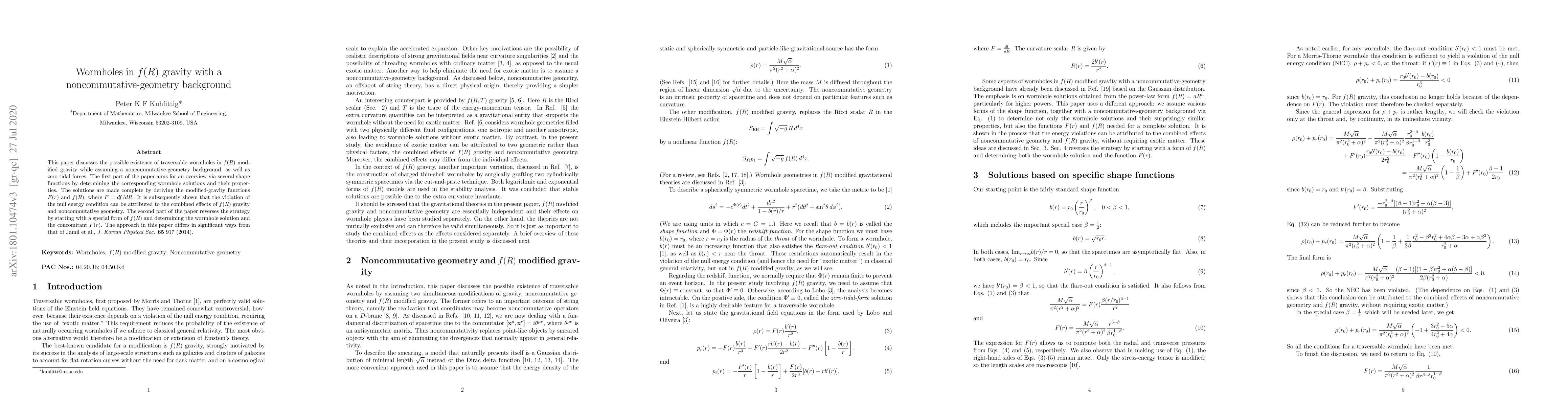 This paper explores traversable wormholes in f(R) modified gravity under a noncommutative-geometry background, demonstrating that the violation of the null energy condition arises from the combined effects of f(R) gravity and noncommutative geometry. It presents both an overview of shape functions and a reverse approach starting with a specific form of f(R) to determine wormhole solutions.