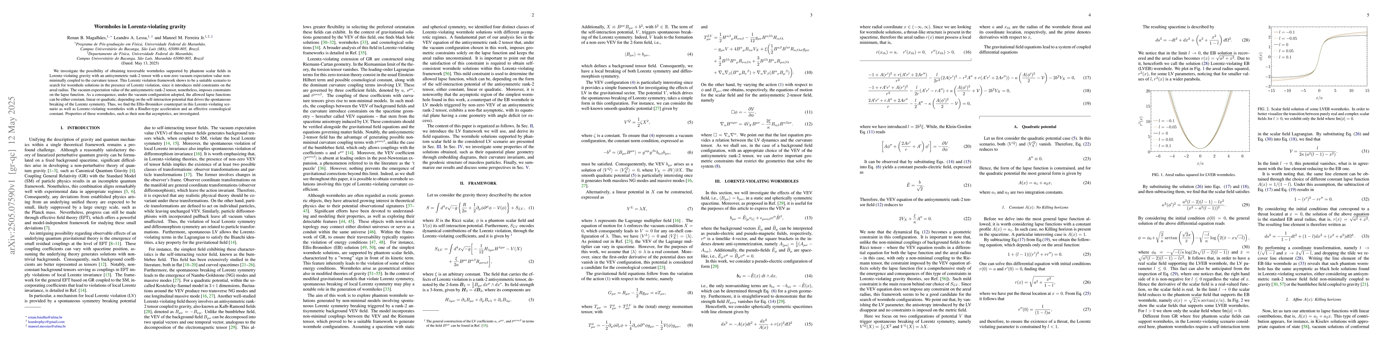 The paper presents a novel approach to obtaining traversable wormholes in a Lorentz-violating gravity setting, identifying specific constraints and possible lapse function forms.