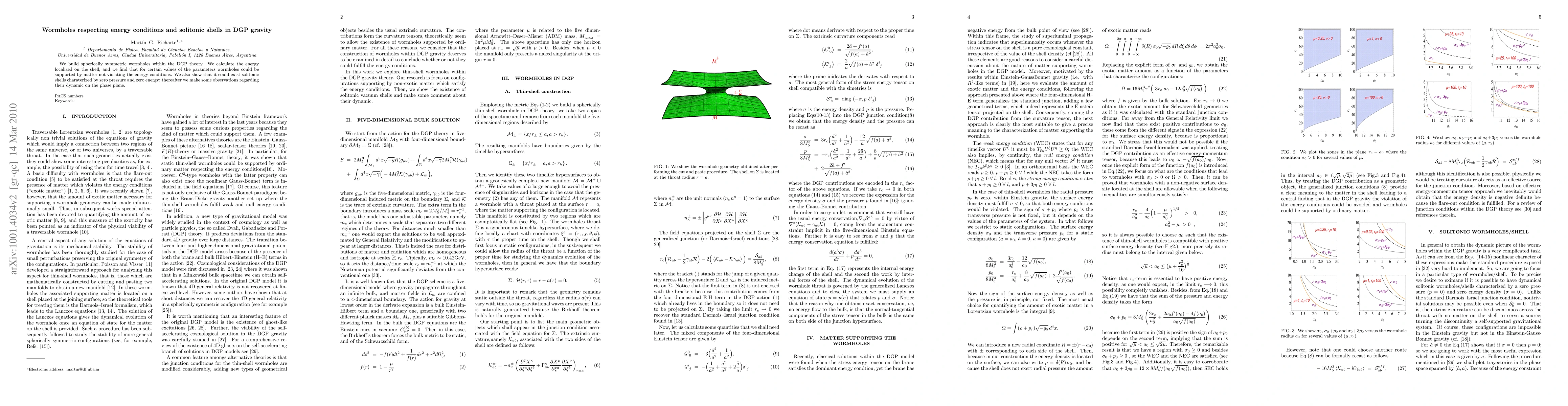 We build spherically symmetric wormholes within the DGP theory. We calculate the energy localized on the shell, and we find that for certain values of the parameters wormholes could be supported by matter not violating the energy conditions. We also show that it could exist solitonic shells charaterized by zero pressure and zero energy; thereafter we make some observations regarding their dynamic on the phase plane.