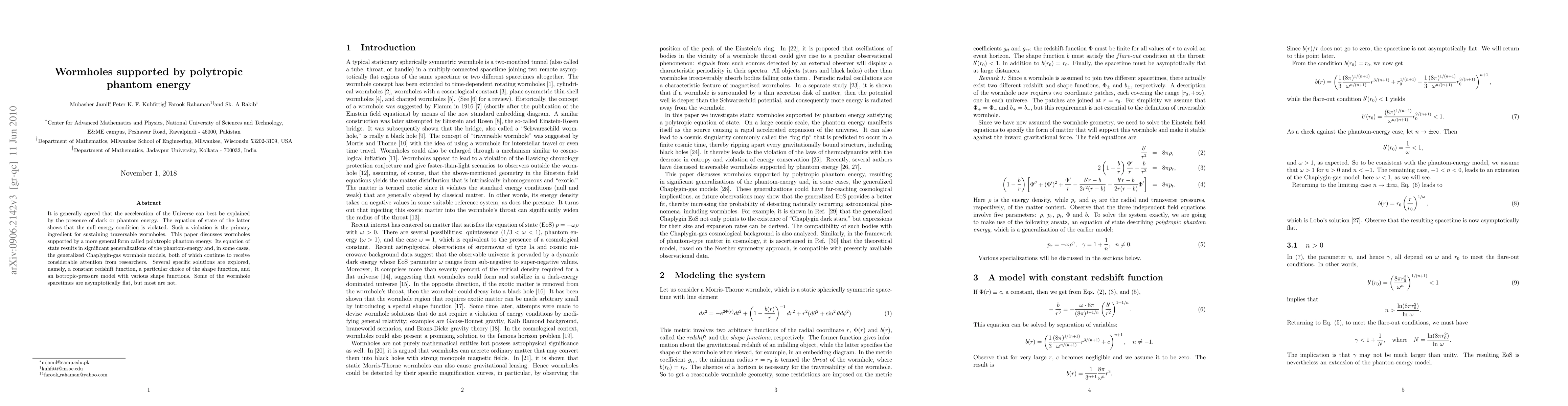 It is generally agreed that the acceleration of the Universe can best be explained by the presence of dark or phantom energy. The equation of state of the latter shows that the null energy condition is violated. Such a violation is the primary ingredient for sustaining traversable wormholes. This paper discusses wormholes supported by a more general form called polytropic phantom energy. The equation of state results in significant generalizations of the phantom-energy and, in some cases, the generalized Chaplygin-gas wormhole models, both of which continue to receive considerable attention from researchers. Several specific solutions are explored, namely, a constant redshift function, a particular choice of the shape function, and an isotropic-pressure model with various shape functions. Some of the wormhole spacetimes are asymptotically flat, but most are not.