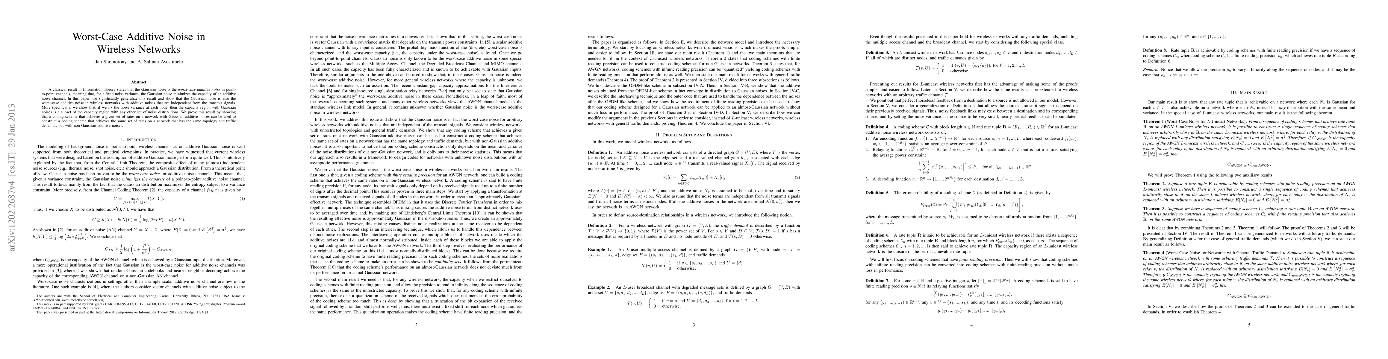 This paper generalizes the classical Information Theory result that Gaussian noise is the worst-case additive noise in point-to-point channels, extending it to wireless networks. It demonstrates that Gaussian noise remains the worst-case additive noise even when the noise is independent of transmit signals, proving that the capacity region with Gaussian noise is a subset of any other noise distribution's capacity region.