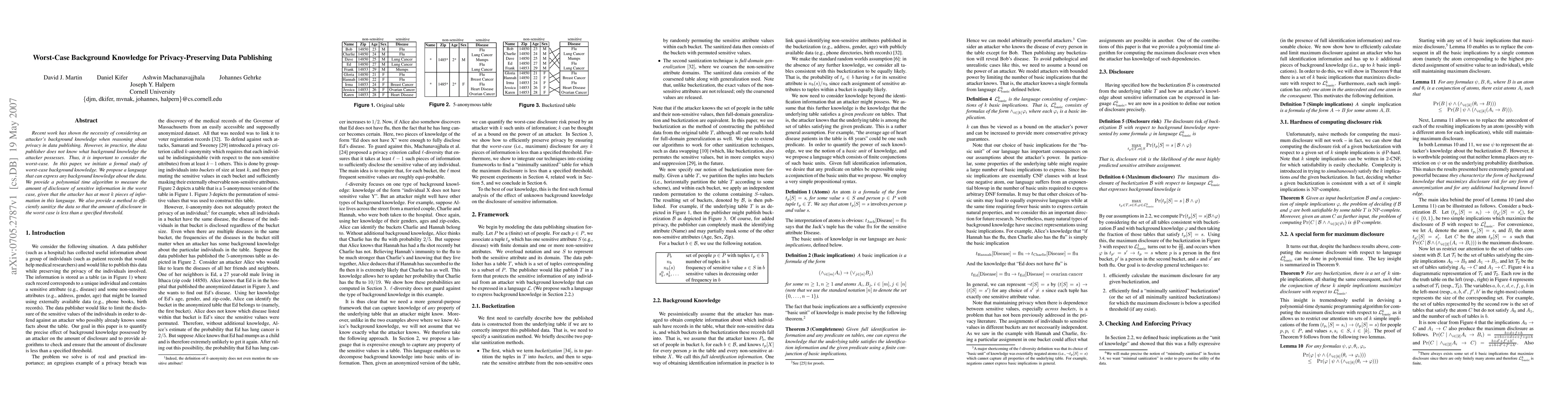 This paper introduces a formal study on worst-case background knowledge in privacy-preserving data publishing. It proposes a language to express any attacker's background knowledge, offers a polynomial time algorithm to gauge potential sensitive information disclosure, and presents a method to efficiently sanitize data to limit such disclosure below a specified threshold.