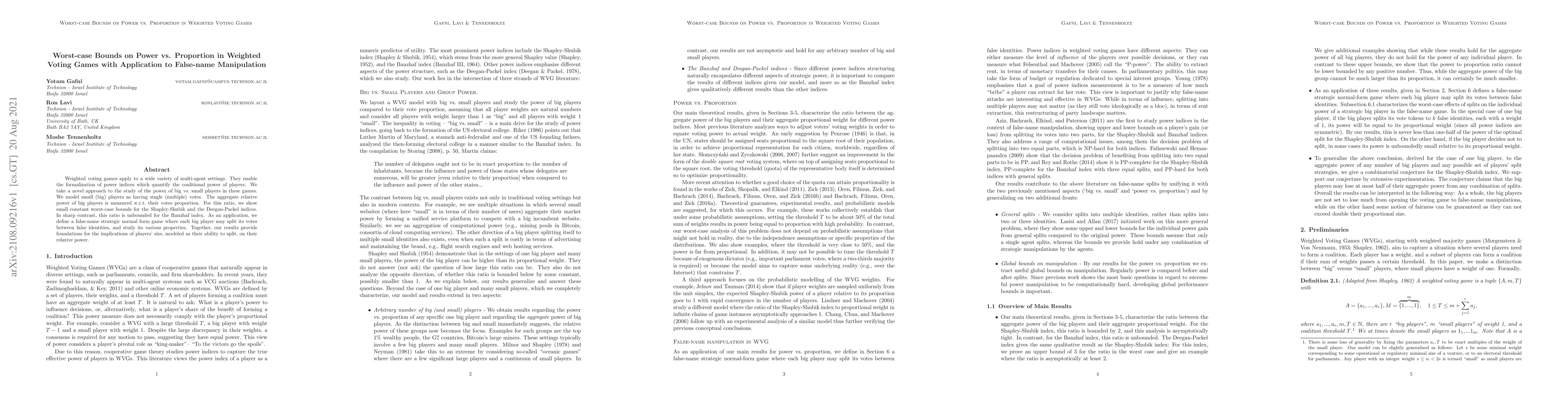 Weighted voting games apply to a wide variety of multi-agent settings. They enable the formalization of power indices which quantify the coalitional power of players. We take a novel approach to the study of the power of big vs.~small players in these games. We model small (big) players as having single (multiple) votes. The aggregate relative power of big players is measured w.r.t.~their votes proportion. For this ratio, we show small constant worst-case bounds for the Shapley-Shubik and the Deegan-Packel indices. In sharp contrast, this ratio is unbounded for the Banzhaf index. As an application, we define a false-name strategic normal form game where each big player may split its votes between false identities, and study its various properties. Together, our results provide foundations for the implications of players' size, modeled as their ability to split, on their relative power.