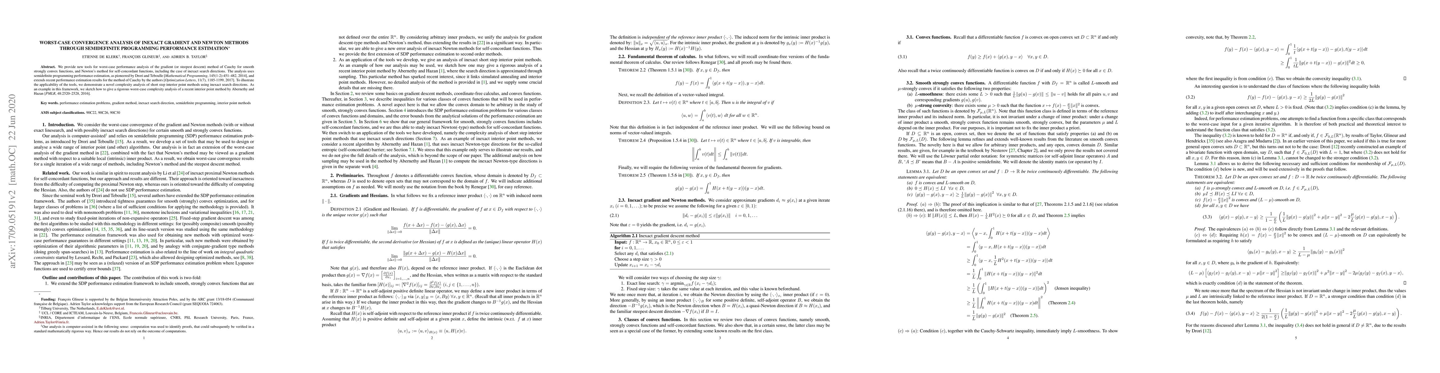 This paper introduces new tools for worst-case performance analysis of gradient and Newton methods, employing semidefinite programming performance estimation. It extends previous work and applies these tools to analyze short step interior point methods with inexact search directions.