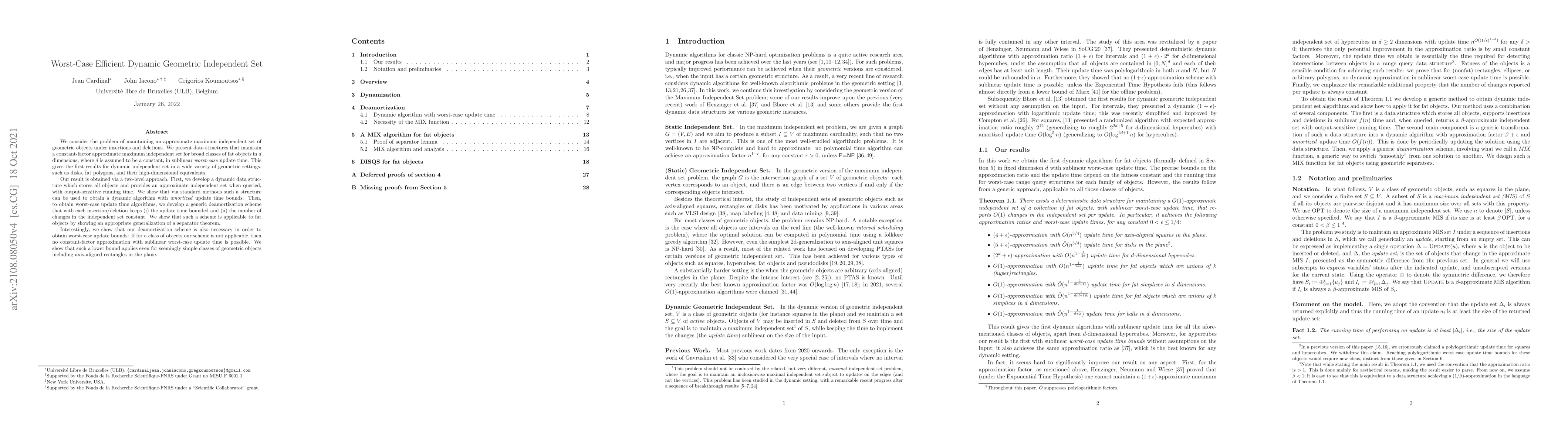 This paper presents data structures for maintaining a constant-factor approximate maximum independent set of fat geometric objects under dynamic updates, achieving sublinear worst-case update time. The authors develop a two-level approach to achieve this, including a deamortization scheme that ensures bounded update time and constant changes in the independent set, while proving its necessity for achieving such bounds.