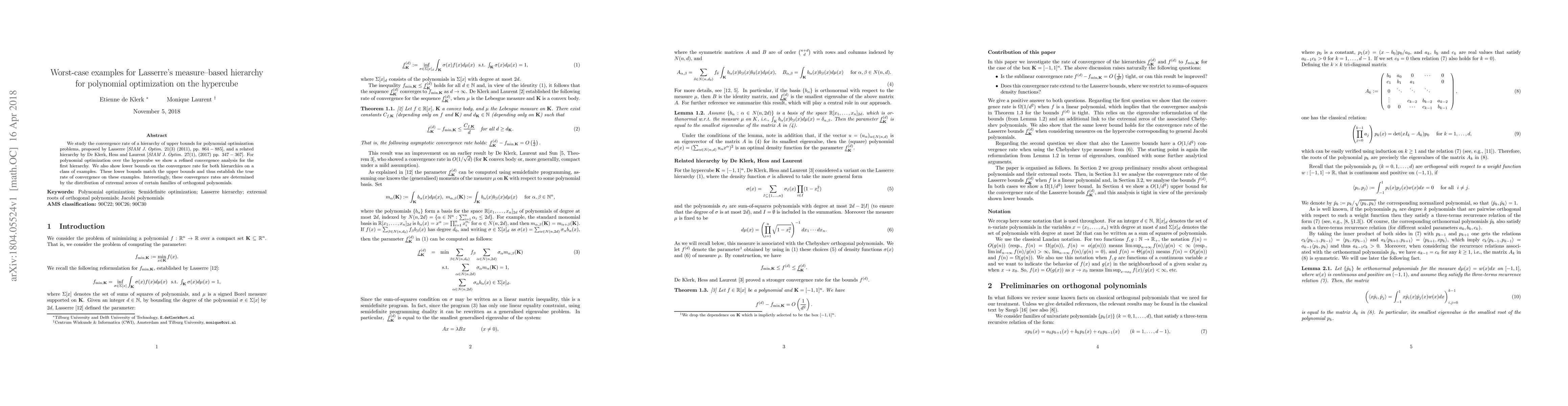 The research uses Lasserre's measure--based hierarchy for polynomial optimization on the hypercube.
