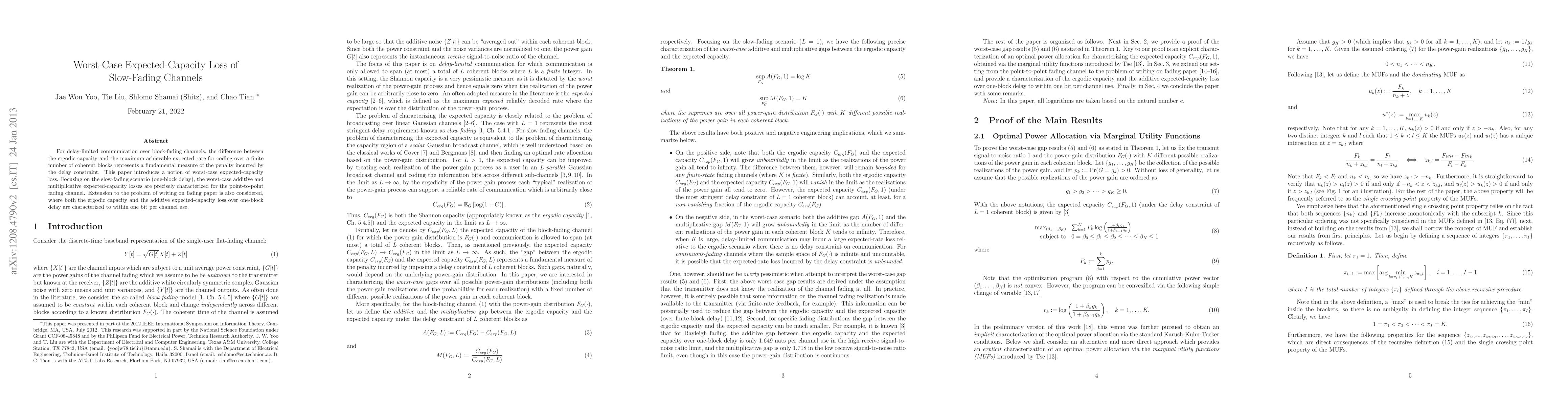 This paper characterizes the worst-case expected-capacity loss for delay-limited communication over slow-fading channels, focusing on the difference between ergodic capacity and achievable rates under delay constraints. It precisely defines and quantifies both additive and multiplicative losses for point-to-point channels and extends the analysis to the problem of writing on fading paper.