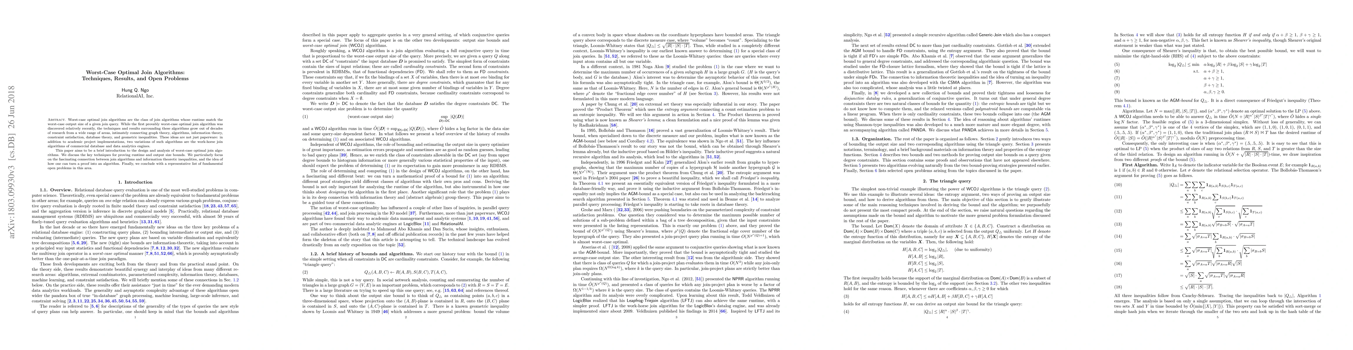 This paper provides an introduction to worst-case optimal join algorithms, discussing techniques and results that align algorithm runtime with query output size. It highlights the interdisciplinary connections and practical applications in database systems, and concludes with a list of open problems.