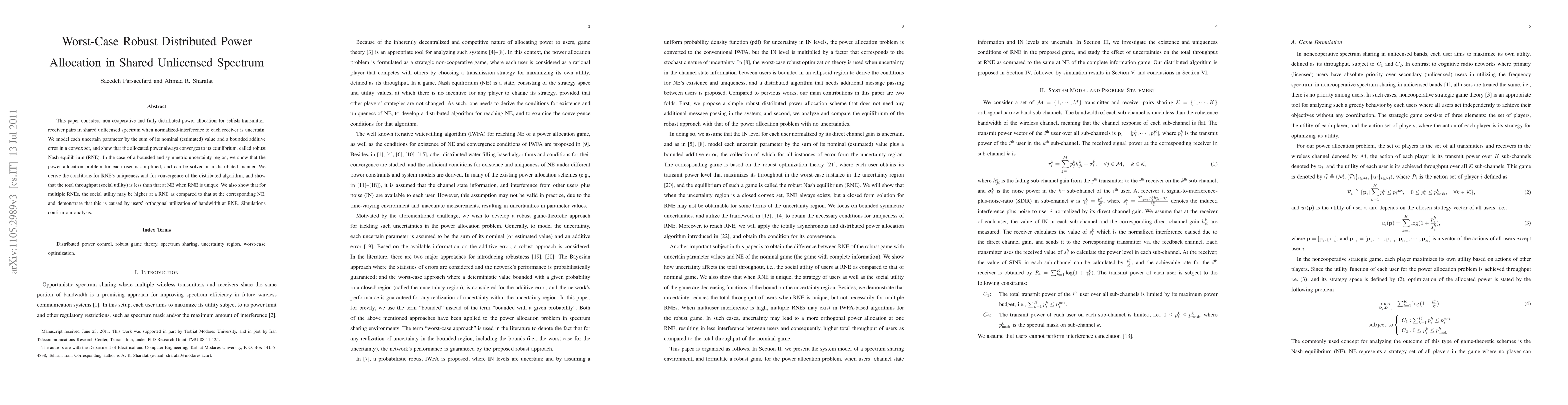 This paper explores distributed power allocation in shared unlicensed spectrum for selfish transmitters, ensuring robust convergence to a robust Nash equilibrium (RNE) under uncertain interference. It demonstrates that under certain conditions, RNE can lead to higher social utility compared to traditional Nash equilibrium due to optimized bandwidth use.