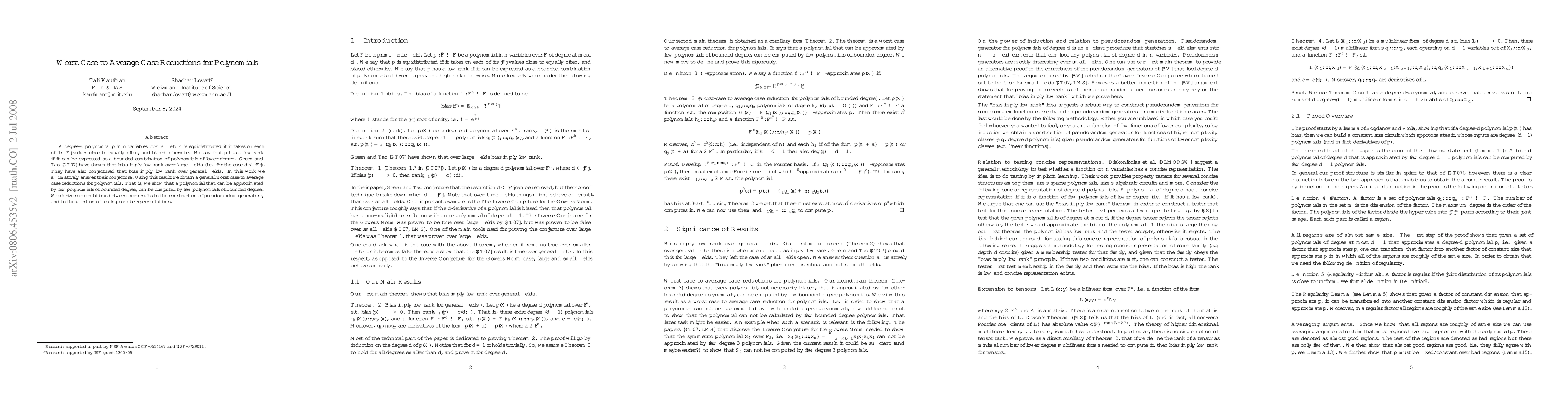 This paper confirms the conjecture by Green and Tao that biased polynomials imply low rank over general fields, leading to a worst case to average case reduction for polynomials. It demonstrates that a polynomial approximable by few low-degree polynomials can also be computed by few such polynomials, with implications for pseudorandom generator construction and testing concise representations.