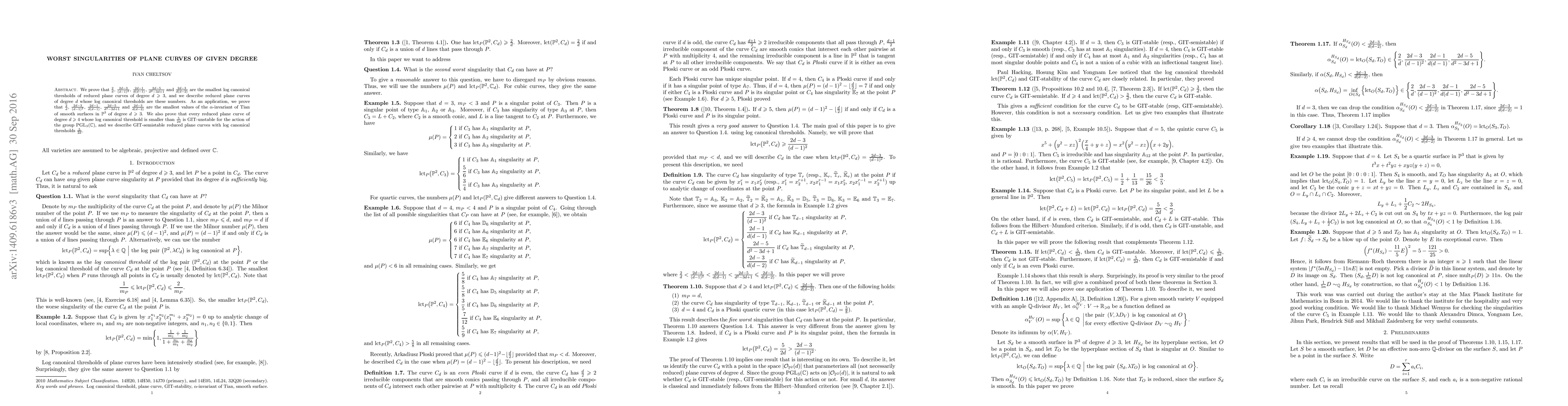 We prove that $\frac{2}{d}$, $\frac{2d-3}{(d-1)^2}$, $\frac{2d-1}{d(d-1)}$, $\frac{2d-5}{d^2-3d+1}$ and $\frac{2d-3}{d(d-2)}$ are the smallest log canonical thresholds of reduced plane curves of degree $d\geqslant 3$, and we describe reduced plane curves of degree $d$ whose log canonical thresholds are these numbers. As an application, we prove that $\frac{2}{d}$, $\frac{2d-3}{(d-1)^2}$, $\frac{2d-1}{d(d-1)}$, $\frac{2d-5}{d^2-3d+1}$ and $\frac{2d-3}{d(d-2)}$ are the smallest values of the $\alpha$-invariant of Tian of smooth surfaces in $\mathbb{P}^3$ of degree $d\geqslant 3$. We also prove that every reduced plane curve of degree $d\geqslant 4$ whose log canonical threshold is smaller than $\frac{5}{2d}$ is GIT-unstable for the action of the group $\mathrm{PGL}_3(\mathbb{C})$, and we describe GIT-semistable reduced plane curves with log canonical thresholds $\frac{5}{2d}$.