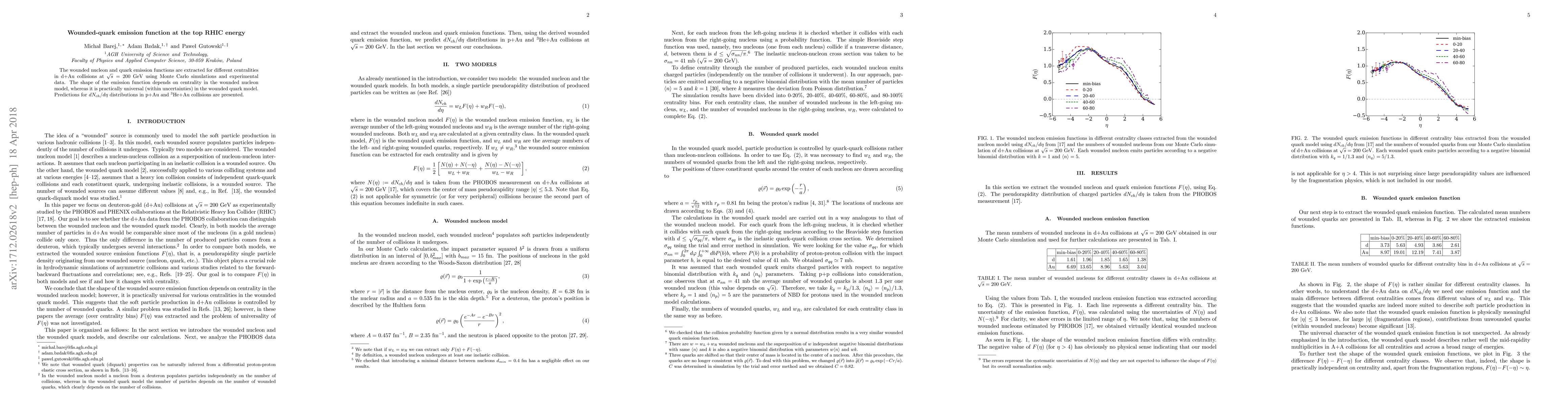 The wounded nucleon and quark emission functions are extracted for different centralities in d+Au collisions at $\sqrt{s}=200\ \text{GeV}$ using Monte Carlo simulations and experimental data. The shape of the emission function depends on centrality in the wounded nucleon model, whereas it is practically universal (within uncertainties) in the wounded quark model. Predictions for $dN_{ch}/d\eta$ distributions in p+Au and $^3$He+Au collisions are presented.