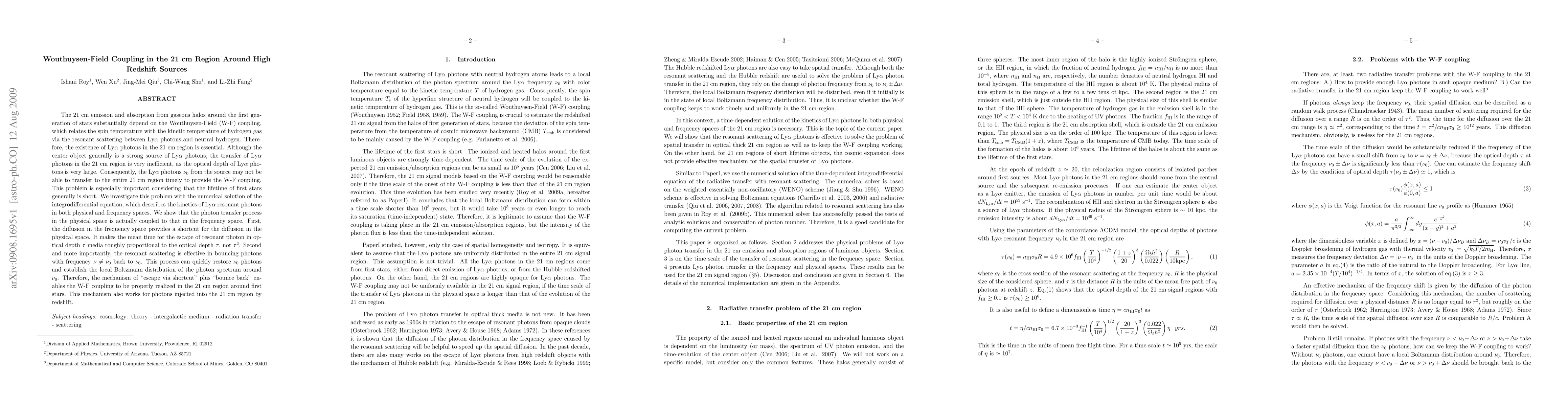 The 21 cm emission and absorption from gaseous halos around the first generation of star depend on the Wouthuysen-Field (W-F) coupling, which relates the spin temperature with the kinetic temperature of hydrogen gas via the resonant scattering between Lyman alpha photons and neutral hydrogen. Although the center object generally is a strong source of these photons, the transfer of these photons in the 21 cm region is inefficient, as the optical depth of the photons is large. Consequently, these photons from the source may not be able to transfer to the entire 21 cm region timely to provide the W-F coupling. This problem is important because the lifetime of first stars generally is short. The problem is investigated with numerical solution of the integro-differential equation, which describes the kinetics of these resonant photons in both physical and frequency spaces. We show that the photon transfer process in the physical space is actually coupled to that in the frequency space. Firstly diffusion in the frequency space provides a shortcut for the diffusion in the physical space. It makes the mean time for the escape of the resonant photon in optical depth \tau media roughly proportional to the optical depth \tau, not \tau^2. Secondly the resonant scattering is effective in bouncing photons with a frequency which is not equal to initial frequency back to the initial frequency. This process can restore initial frequency photons and establish the local Boltzmann distribution of the photon spectrum around the initial frequency. Therefore, the mechanism of 'escape via shortcut' plus 'bounce back' enables W-F coupling to be properly realized in the 21 cm region around first stars. This mechanism also works for photons injected into the 21 cm region by redshift.