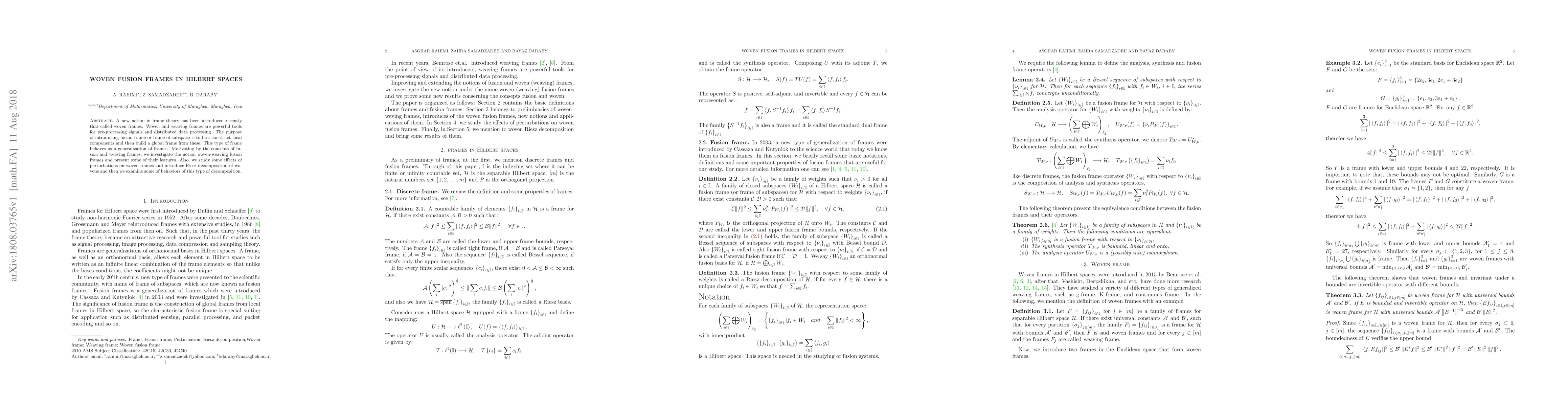 This paper introduces woven-weaving fusion frames in Hilbert spaces, a generalization of traditional frames, and explores their properties, including the effects of perturbations and Riesz decomposition. The study aims to enhance signal and data processing through these advanced frame structures.