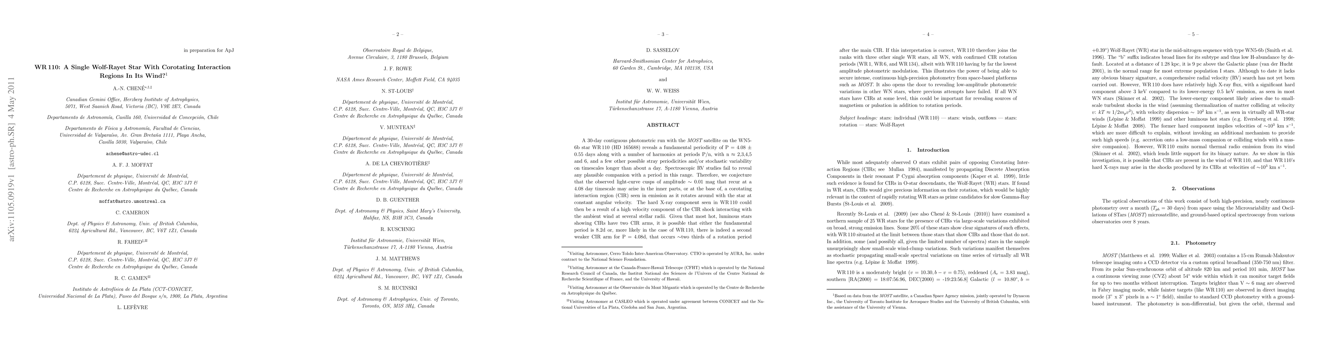 The MOST satellite detected a 4.08-day periodicity in the light curve of the WN5-6b star WR 110, suggesting the presence of a corotating interaction region (CIR) in its wind. This finding positions WR 110 among a rare group of single Wolf-Rayet stars with confirmed CIR rotation periods, highlighting the potential for space-based photometry to uncover low-amplitude variations in other WN stars.