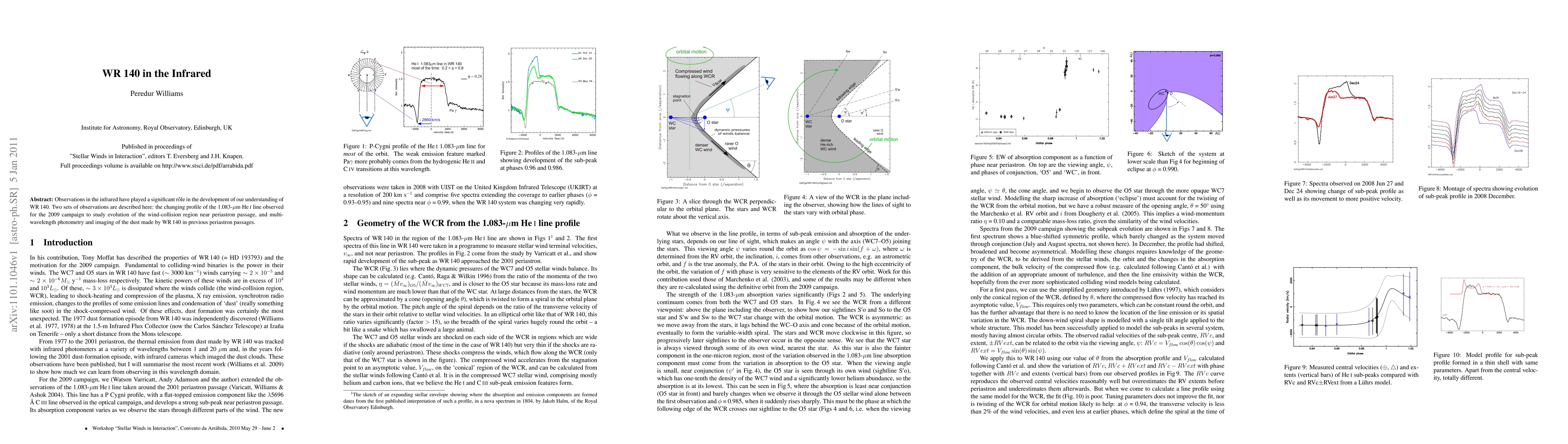 Observations in the infrared have played a significant role in the development of our understanding of WR140. Two sets of observations are described here: the changing profile of the 1.083-{\mu}m He I line observed for the 2009 campaign to study evolution of the wind-collision region near periastron passage, and multiwavelength photometry and imaging of the dust made by WR140 in previous periastron passages.