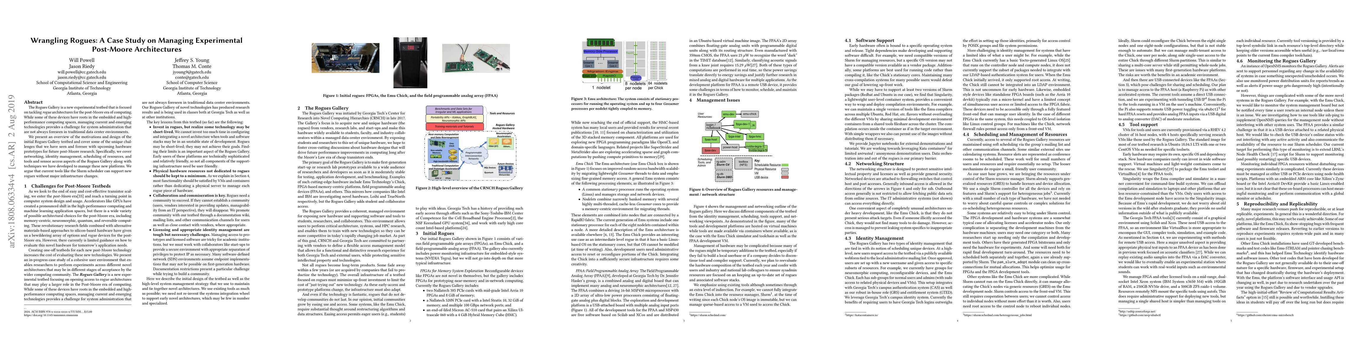This paper introduces the Rogues Gallery, an experimental testbed for managing "rogue" architectures in the Post-Moore era, focusing on unique challenges in networking, identity management, resource scheduling, and tool access. It outlines the design and initial findings in handling emerging technologies in non-traditional data center environments.