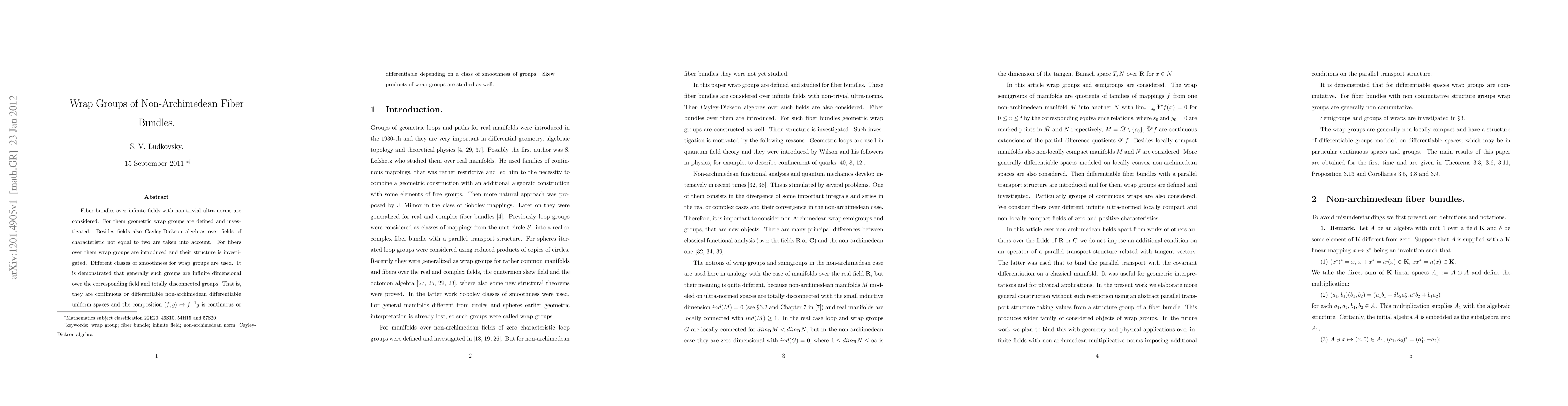This paper defines and investigates geometric wrap groups for fiber bundles over infinite fields with non-trivial ultra-norms and Cayley-Dickson algebras. It demonstrates that these wrap groups are typically infinite-dimensional, totally disconnected, and continuous or differentiable in non-Archimedean spaces, depending on their smoothness class.