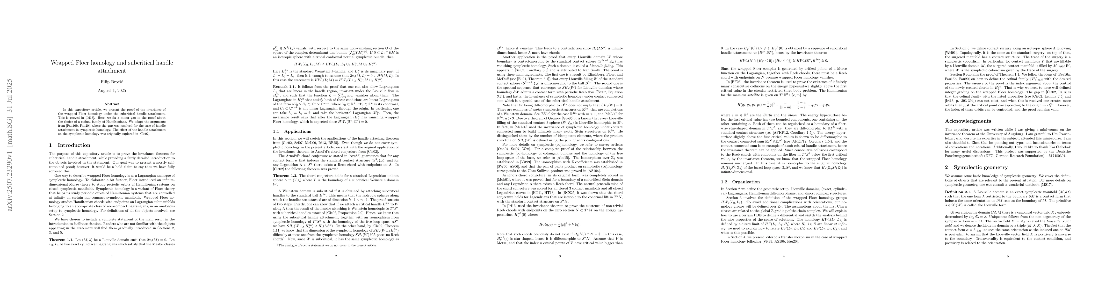 In this expository article, we present the proof of the invariance of the wrapped Floer homology under the subcritical handle attachment. This is proved by Irie. Here, we fix a minor gap in the proof about the choice of a cofinal family of Hamiltonians. We adapt the arguments from Fauck's PhD thesis, who resolved the gap for the case of handle attachment in symplectic homology. The effect of the handle attachment on the symplectic homology was originally explored by Cieliebak.