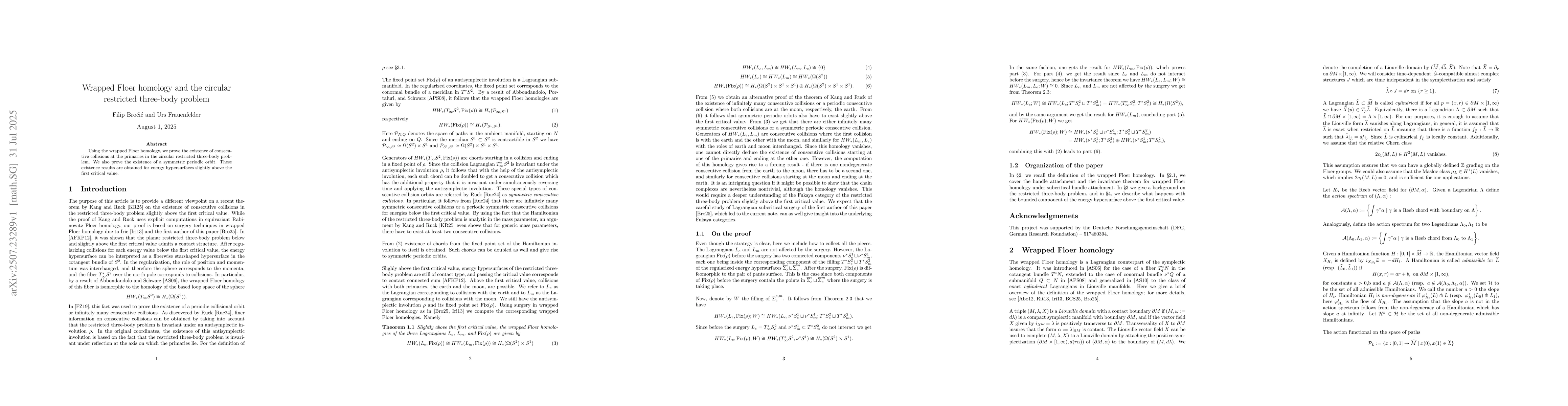 Using the wrapped Floer homology, we prove the existence of consecutive collisions at the primaries in the circular restricted three-body problem. We also prove the existence of a symmetric periodic orbit. These existence results are obtained for energy hypersurfaces slightly above the first critical value.