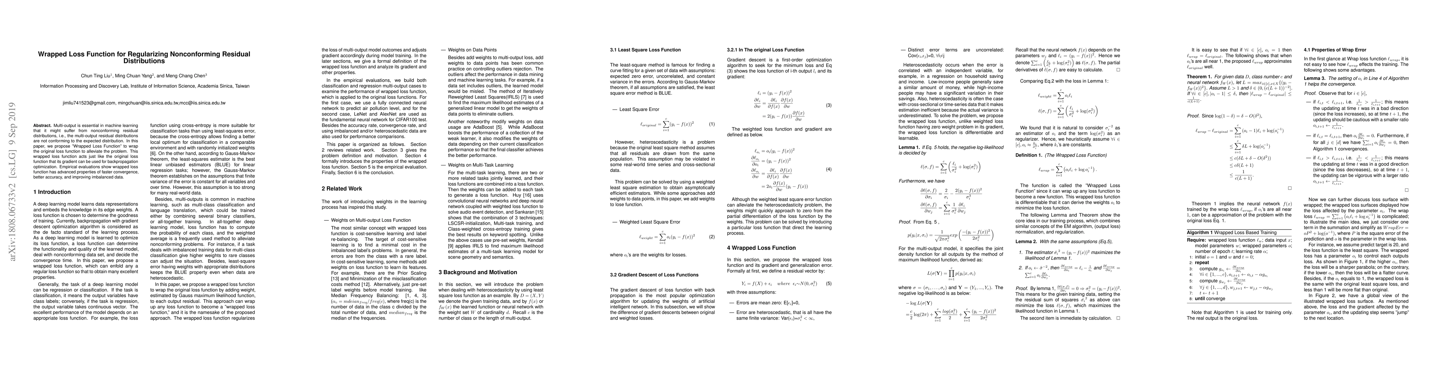 Multi-output is essential in machine learning that it might suffer from nonconforming residual distributions, i.e., the multi-output residual distributions are not conforming to the expected distribution. In this paper, we propose "Wrapped Loss Function" to wrap the original loss function to alleviate the problem. This wrapped loss function acts just like the original loss function that its gradient can be used for backpropagation optimization. Empirical evaluations show wrapped loss function has advanced properties of faster convergence, better accuracy, and improving imbalanced data.