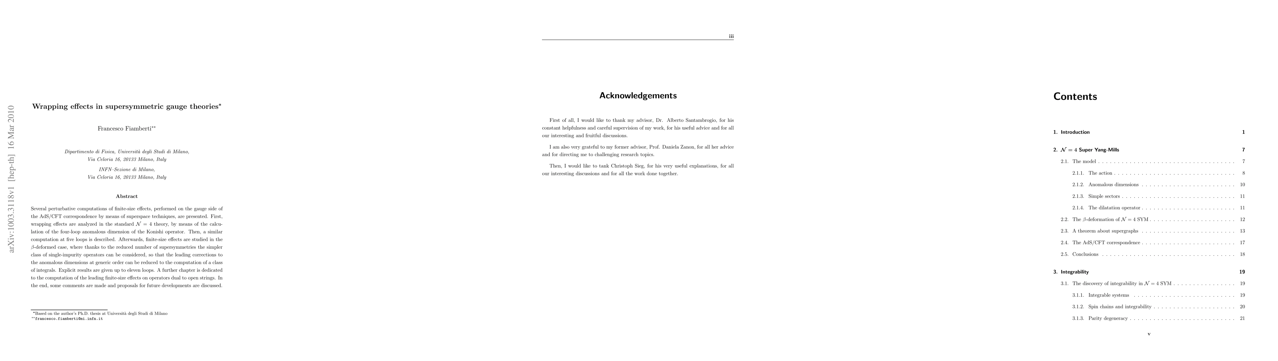 Several perturbative computations of finite-size effects, performed on the gauge side of the AdS/CFT correspondence by means of superspace techniques, are presented. First, wrapping effects are analyzed in the standard N = 4 theory, by means of the calculation of the four-loop anomalous dimension of the Konishi operator. Then, a similar computation at five loops is described. Afterwards, finite-size effects are studied in the beta-deformed case, where thanks to the reduced number of supersymmetries the simpler class of single-impurity operators can be considered, so that the leading corrections to the anomalous dimensions at generic order can be reduced to the computation of a class of integrals. Explicit results are given up to eleven loops. A further chapter is dedicated to the computation of the leading finite-size effects on operators dual to open strings. In the end, some comments are made and proposals for future developments are discussed.
