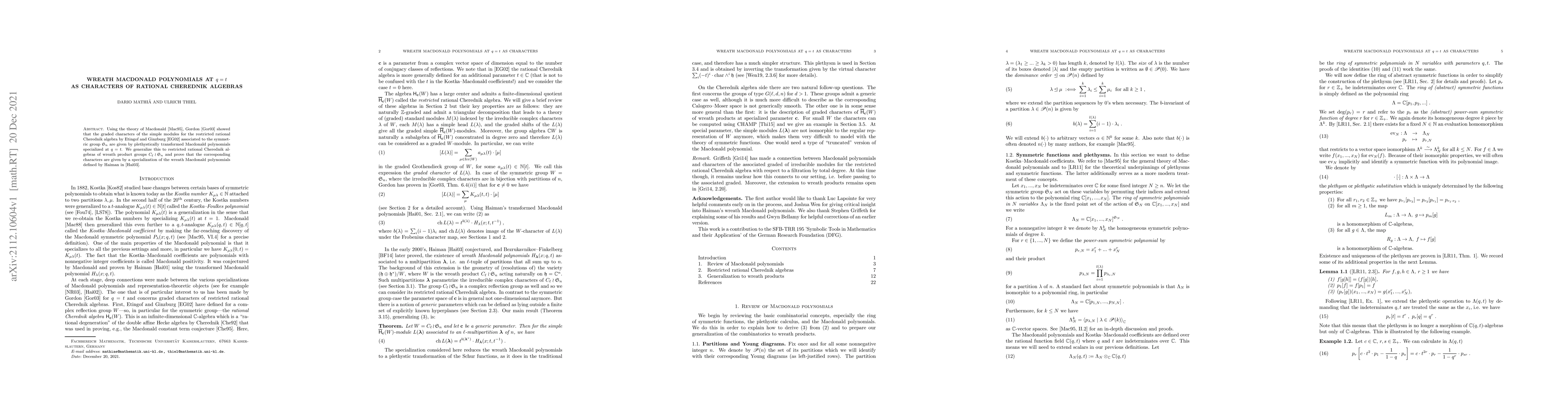 Summary: The paper generalizes the connection between plethystically transformed Macdonald polynomials and characters of restricted rational Cherednik algebras to algebras associated with wreath product groups, demonstrating that the characters are given by a specialization of wreath Macdonald polynomials.