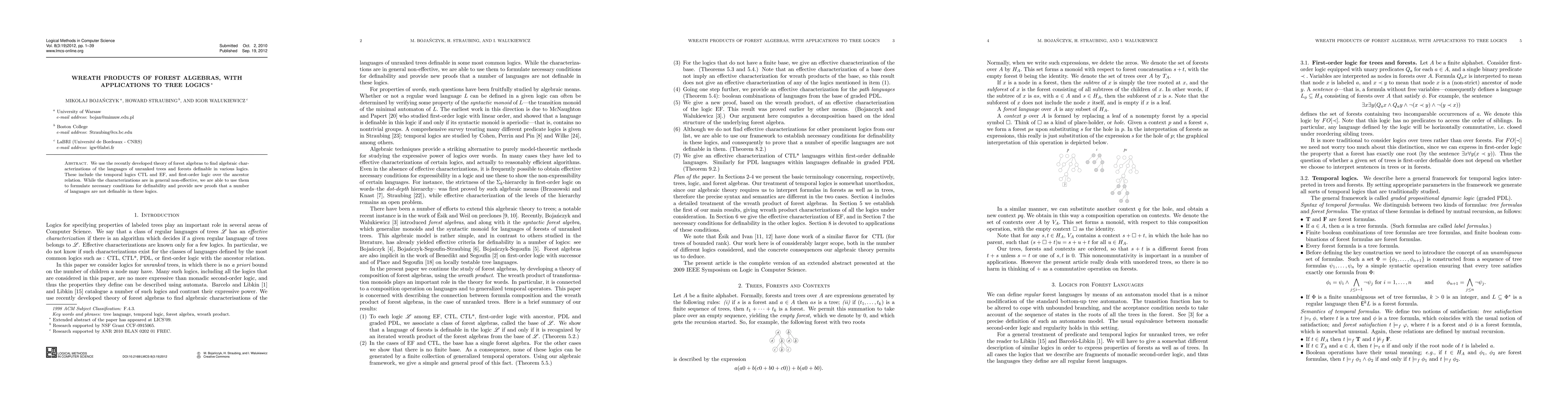 Researchers used forest algebras to find algebraic characterizations of tree languages definable in various logics, leading to new proofs about language definability.