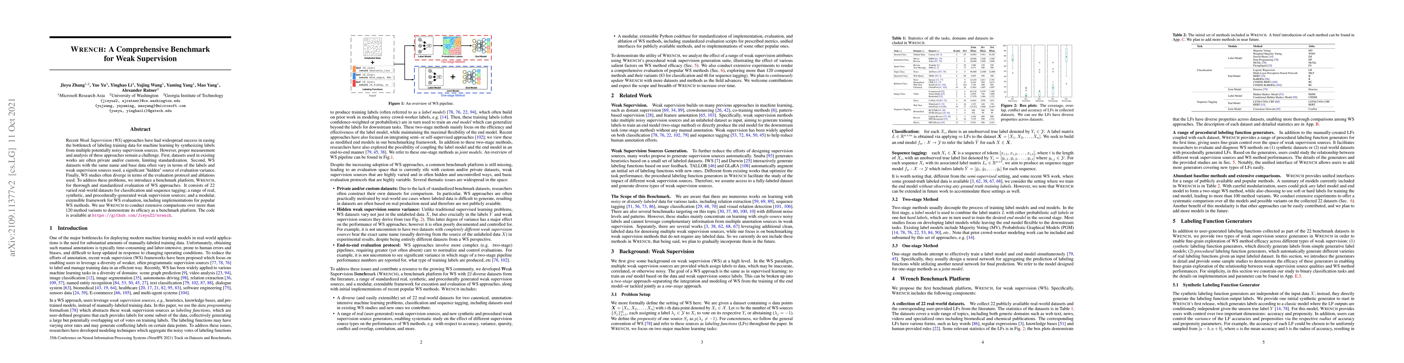 The WRENCH benchmark platform evaluates 22 diverse datasets with various weak supervision sources, comparing over 120 WS methods to establish a standardized framework for measuring their performance.