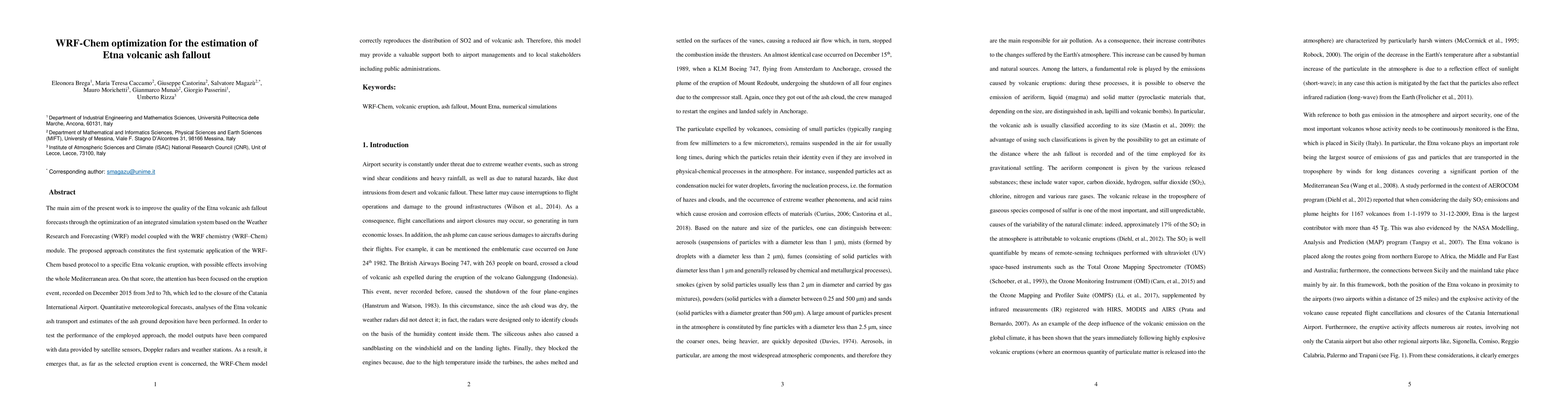 The research utilized the Weather Research and Forecasting (WRF) model coupled with the WRF chemistry (WRF-Chem) module to simulate and analyze the Etna volcanic ash fallout during the December 2015 eruption, optimizing the system for improved forecasting.