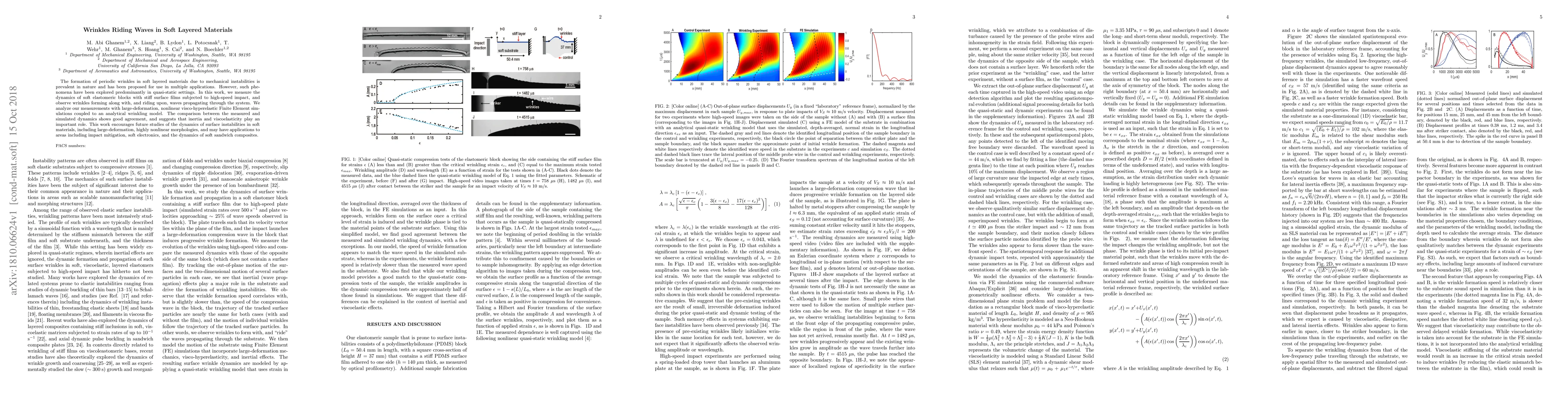 This study investigates the dynamic formation of periodic wrinkles in soft layered materials under high-speed impact, revealing that wrinkles form and ride on waves. The findings, supported by simulations, suggest that inertia and viscoelasticity significantly influence the process, with potential applications in impact mitigation and soft electronics.