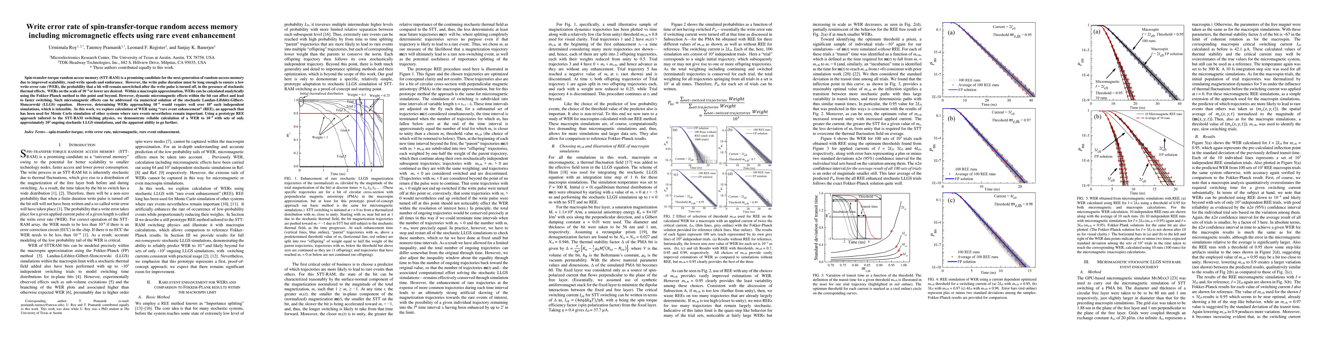 This research explores the write error rate (WER) in spin-transfer-torque random access memory (STT-RAM) using micromagnetic effects, applying rare event enhancement (REE) to overcome the computational burden of traditional methods. The authors demonstrate the feasibility of calculating WER down to 10$^{-9}$ with significantly fewer simulations, showcasing a prototype REE approach tailored to STT-RAM physics.
